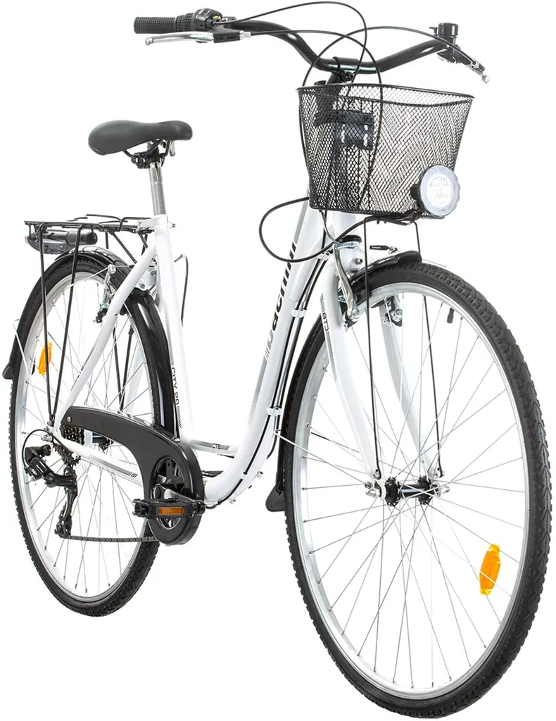 28 Zoll City Fahrrad Shimano 7 Gang, Mit Korb Und Lichtanlage, Unisex Geeignet Ab 170-185 Cm