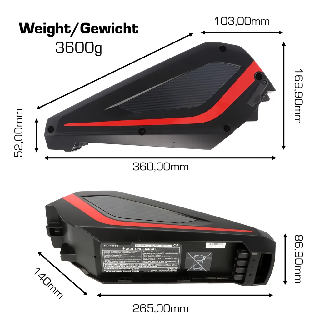 412Wh FLYER Panasonic E-Bike Rahmenakku Vollblut Akkutyp NKY455B2 46,8V 8,8Ah 13ICR19/66-4 NKY442B2, NKY506B2