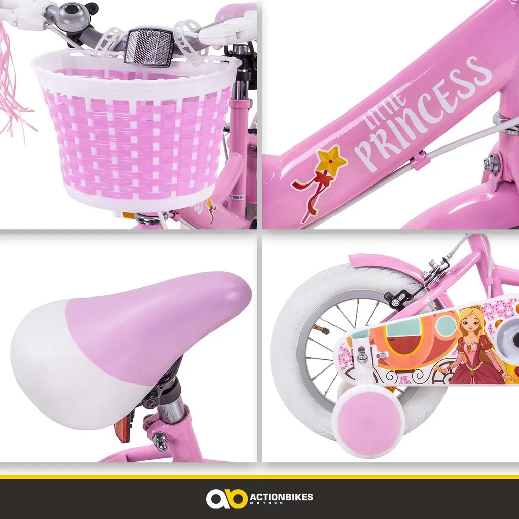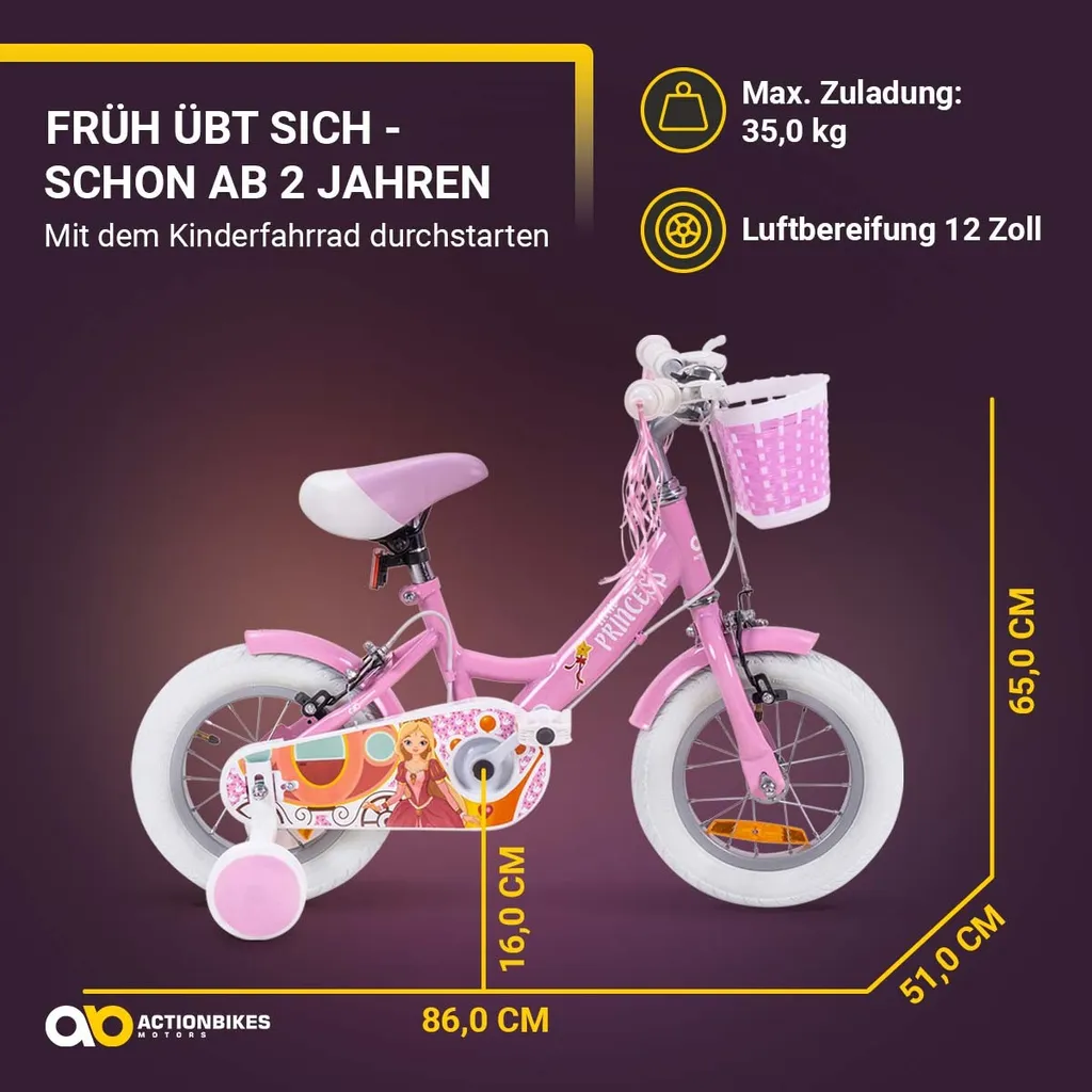 Actionbikes Kinderfahrrad Princess 12 Zoll – Kinder – Mädchen – Fahrrad – Stützräder – Rosa – 2 – 5 Jahre – Kinderrad – Antirutschgriffe – Rad – Bike