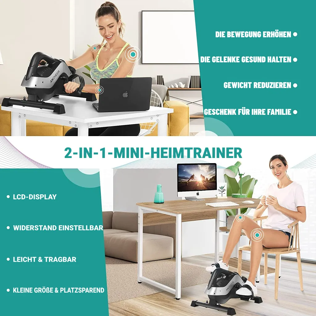 Ancheer Mini Pedaltrainer, Büro Heimtrainer Fitness Bike, Arm- Und Beintrainer, Minifahrrad, 10 Widerstandsstufen, Mit LCD Display
