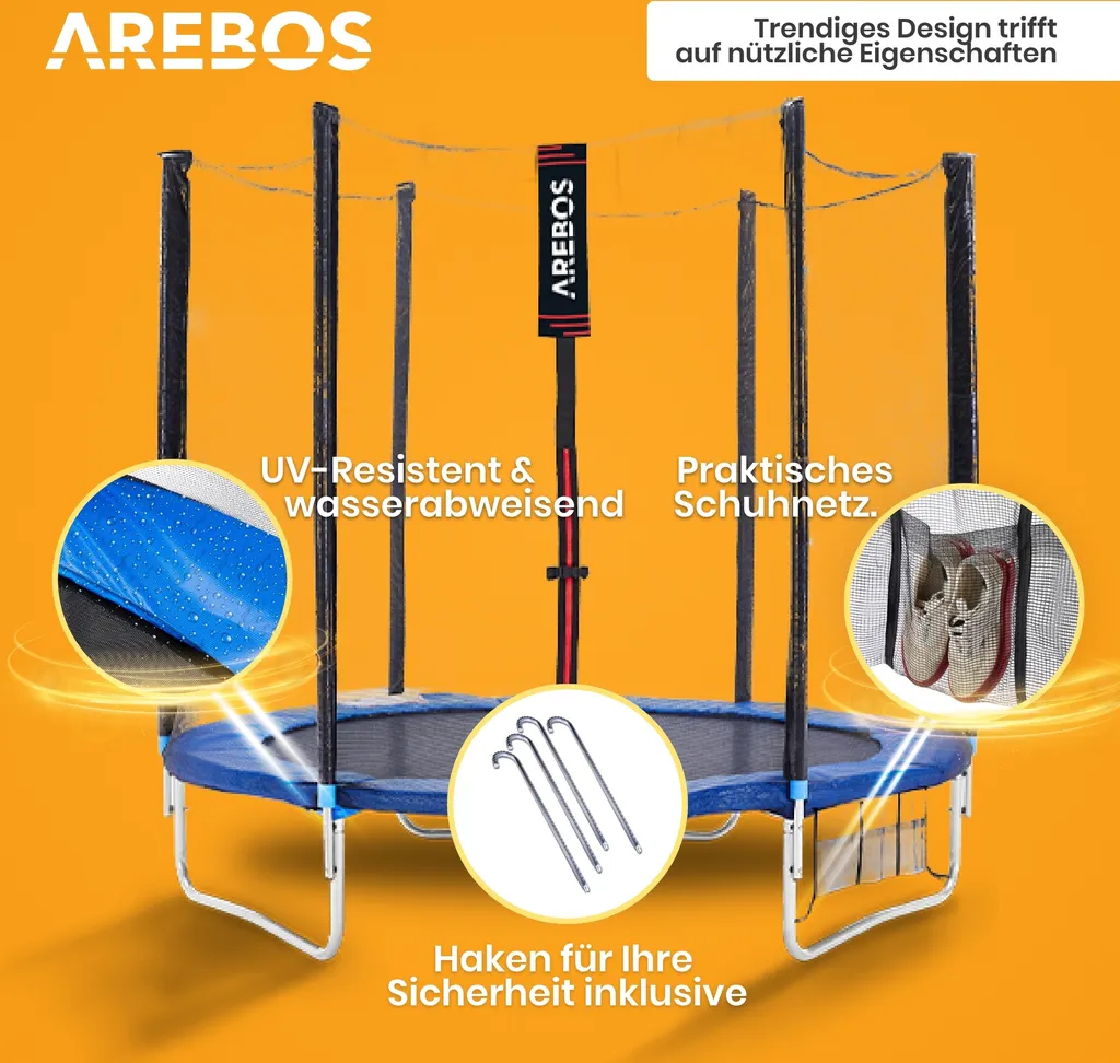 Schreibe die erste Rezension für „AREBOS Outdoor Trampolin Ø 244 Cm, Komplettset, Gartentrampolin“ Antwort abbrechen