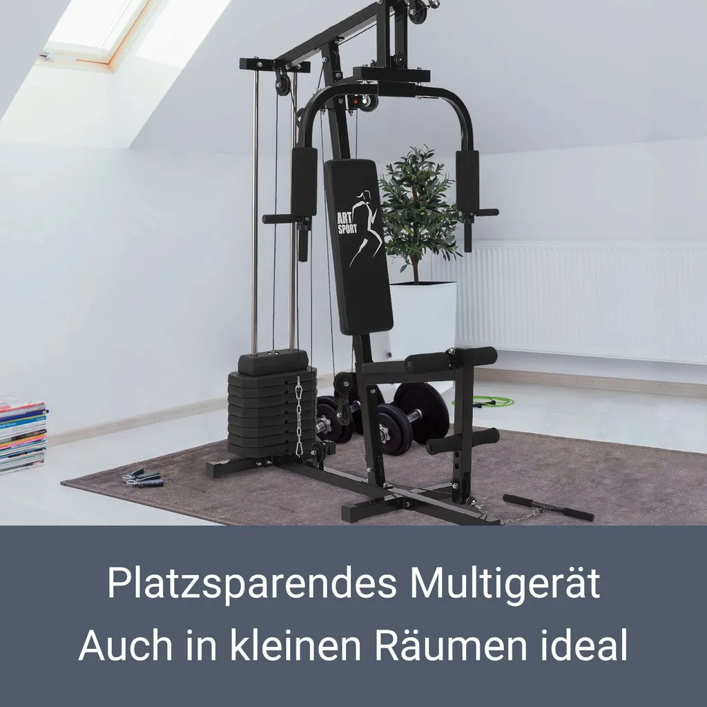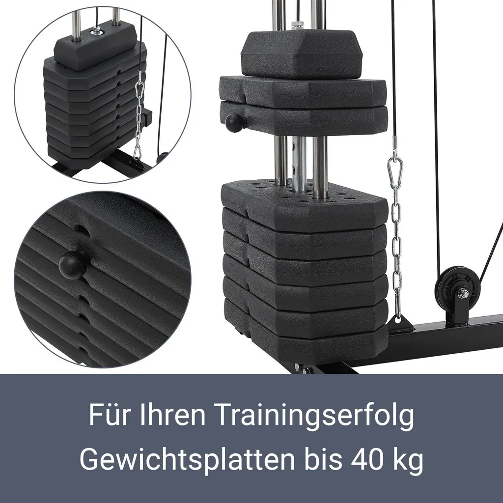 ArtSport Kraftstation ProfiGym 2000 Mit Latzug- & Butterflystange, Seilzug & Beinstrecker – 9 Gewichte Mit 40kg – Multistation Krafttraining Zuhause