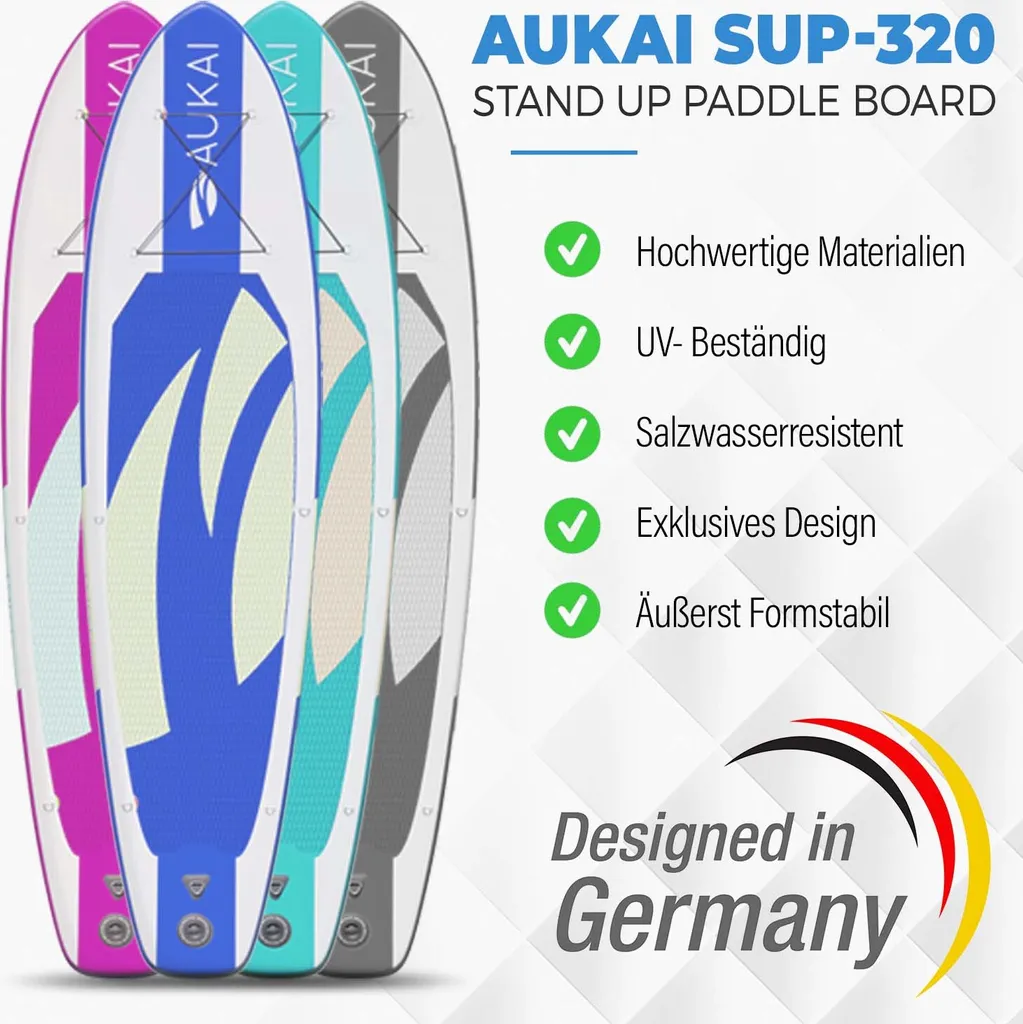 | Zusätzliche Varianten | Aukai® Stand Up Paddle Board 320cm "Manta" SUP Surfboard aufblasbar + Paddel Surfbrett Paddling Paddelboard – blau, Aukai® Stand Up Paddle Board 320cm "Manta" SUP Surfboard aufblasbar + Paddel Surfbrett Paddling Paddelboard – grau, Aukai® Stand Up Paddle Board 320cm "Manta" SUP Surfboard aufblasbar + Paddel Surfbrett Paddling Paddelboard – pink, Aukai® Stand Up Paddle Board 320cm "Manta" SUP Surfboard aufblasbar + Paddel Surfbrett Paddling Paddelboard – türkis, Aukai® Stand Up Paddle Board 320cm "Ocean" SUP Surfboard aufblasbar + Paddel Surfbrett Paddling Paddelboard – blau, Aukai® Stand Up Paddle Board 320cm "Ocean" SUP Surfboard aufblasbar + Paddel Surfbrett Paddling Paddelboard – grau, Aukai® Stand Up Paddle Board 320cm "Ocean" SUP Surfboard aufblasbar + Paddel Surfbrett Paddling Paddelboard – pink, Aukai® Stand Up Paddle Board 320cm "Ocean" SUP Surfboard aufblasbar + Paddel Surfbrett Paddling Paddelboard – türkis, Aukai® Stand Up Paddle Board 320cm "Tribal" SUP Surfboard aufblasbar + Paddel Surfbrett Paddling Paddelboard – blau, Aukai® Stand Up Paddle Board 320cm "Tribal" SUP Surfboard aufblasbar + Paddel Surfbrett Paddling Paddelboard – grau, Aukai® Stand Up Paddle Board 320cm "Tribal" SUP Surfboard aufblasbar + Paddel Surfbrett Paddling Paddelboard – orange, Aukai® Stand Up Paddle Board 320cm "Tribal" SUP Surfboard aufblasbar + Paddel Surfbrett Paddling Paddelboard – pink |