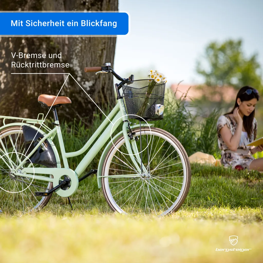 Bergsteiger Amsterdam Damenfahrrad 28 Zoll, Mit Korb, Fahrrad-Licht, Rücktrittbremse, Rahmenhöhe 48 Cm, Hollandrad Im Retro-Design, Farbe Rot