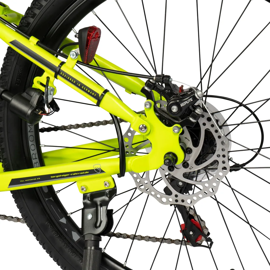 Bergsteiger Broome 24 Zoll Kinderfahrrad, Shimano 21 Gang-Schaltung, StVZO, Mountainbike Mit Vollfederung, Scheibenbremsen & Dynamo-Licht, Geeignet Für 8, 9, 10, 11, 12, 13 Jahre, Jungen-Fahrrad & Mädchen-Fahrrad