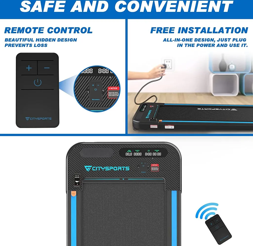 Citysports WP2 Laufband, 440W Motor, Eingebaute Bluetooth-Lautsprecher, Einstellbare Geschwindigkeit 1-6KM
