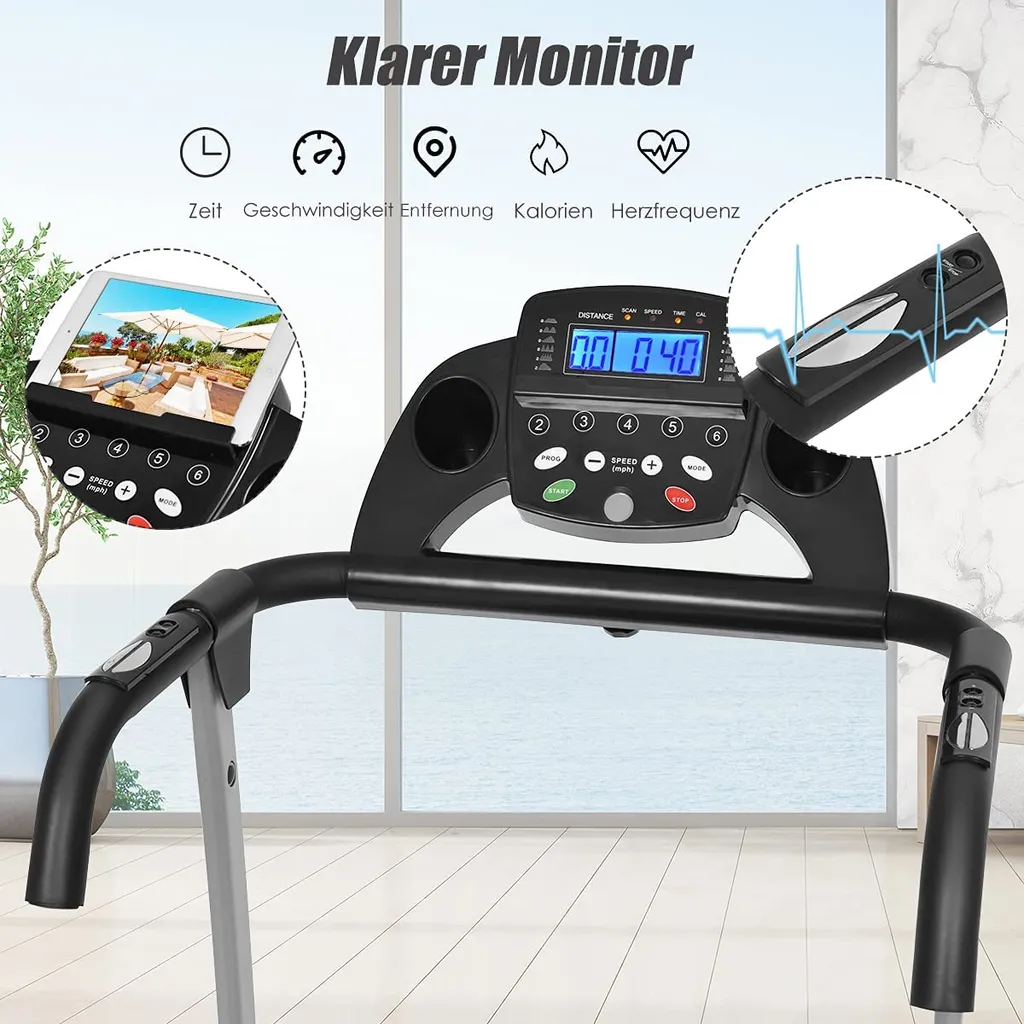 COSTWAY Elektrisches Laufband Mit 12 Programmen,1-10 Km/h, LCD Display, Klappbar Und Rollbar, Bis 100 Kg Belastbar, Inkl. Sicherheitsschlüssel, Fitnessgerät Für Zuhause & Büro