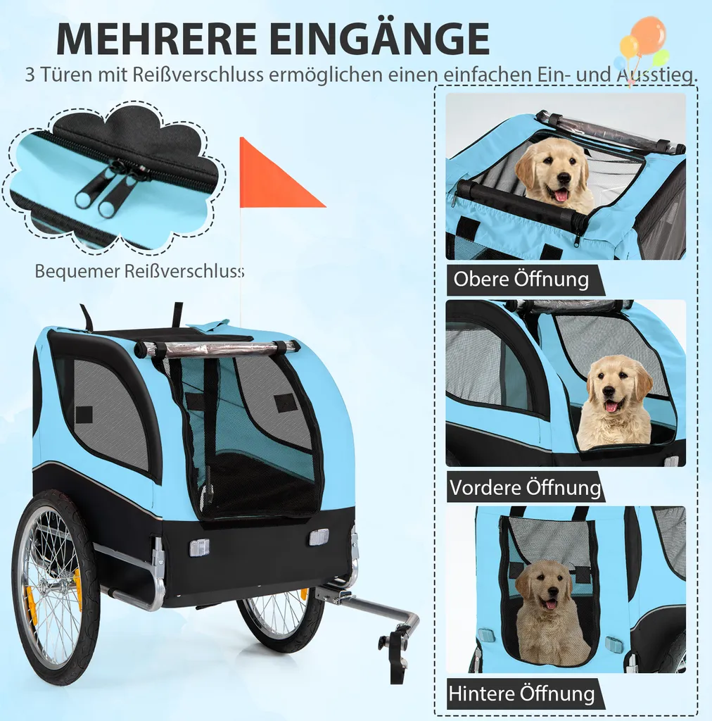COSTWAY Hundeanhänger Für Fahrrad, Bis 40 Kg Belastbar, Fahrradanhänger Für Kleine & Mittelgroße Hunde, Klappbarer Hundebuggy Hundefahrradanhänger