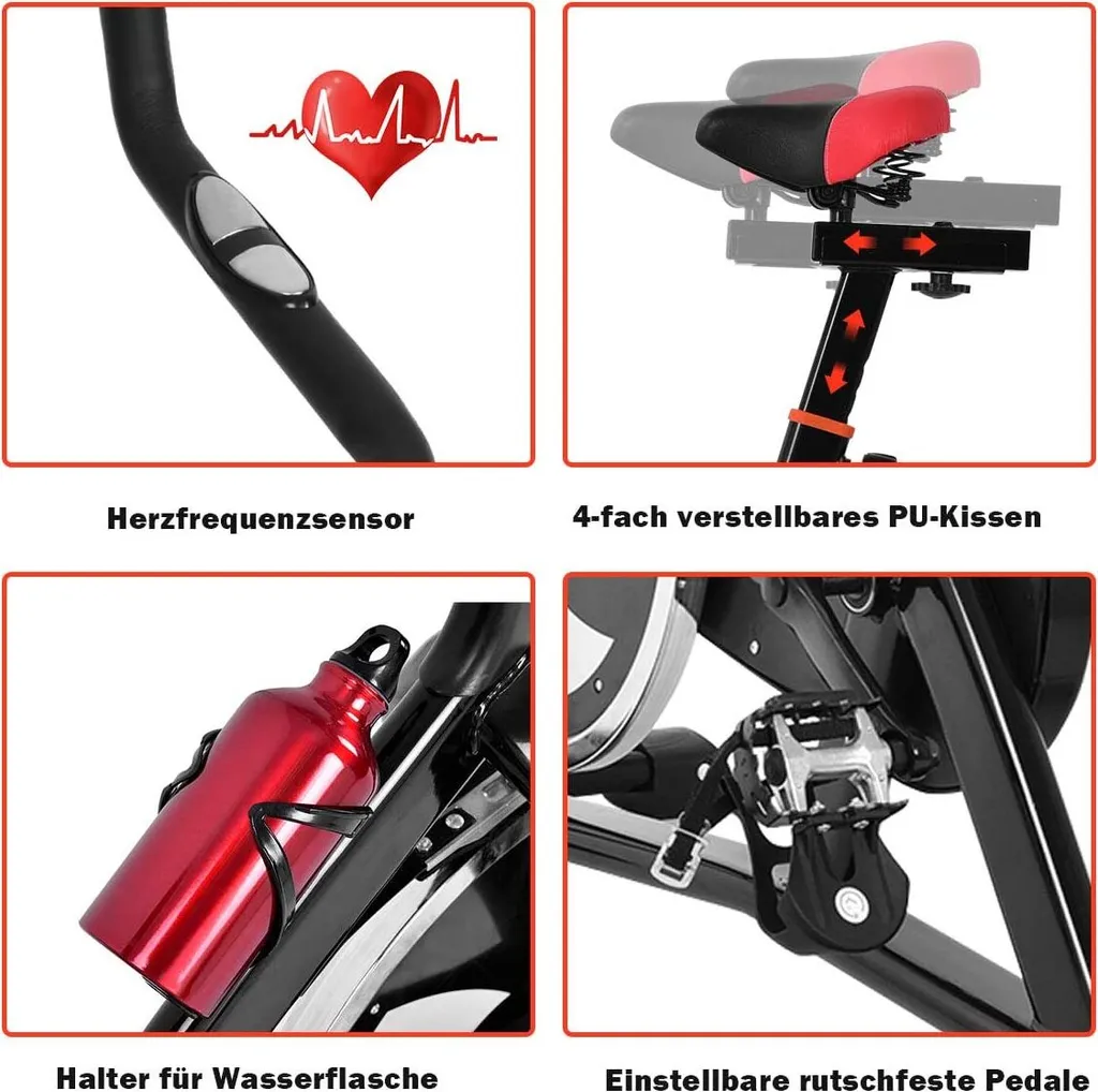COSTWAY Indoor Fahrrad Mit 10KG Schwungrad, Heimtrainer Fahrrad Mit Einstellbarem Widerstand/Sitz/Lenker, Getränkehalter Und LCD-Anzeige, Fitnessbike Bis 130KG Belastbar, Inkl. Wasserflaschebelastbar