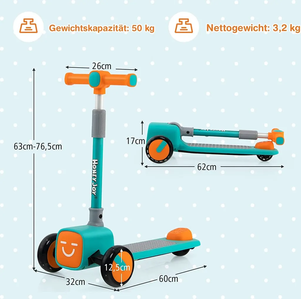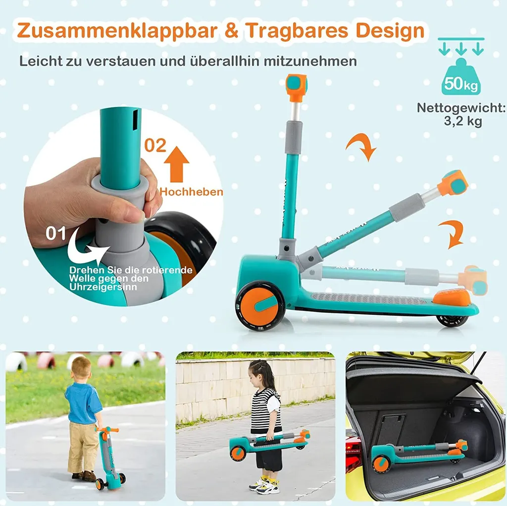 Schreibe die erste Rezension für „COSTWAY Kinder Roller Scooter, Mit 3-Fach Höhenverstellbarem Lenker, Leuchtenden Rädern, 4 Austauschbaren Emoji-Frontabdeckungen, Kinderscooter Klappbar, Tretroller Kickroller Dreirad, Grün“ Antwort abbrechen