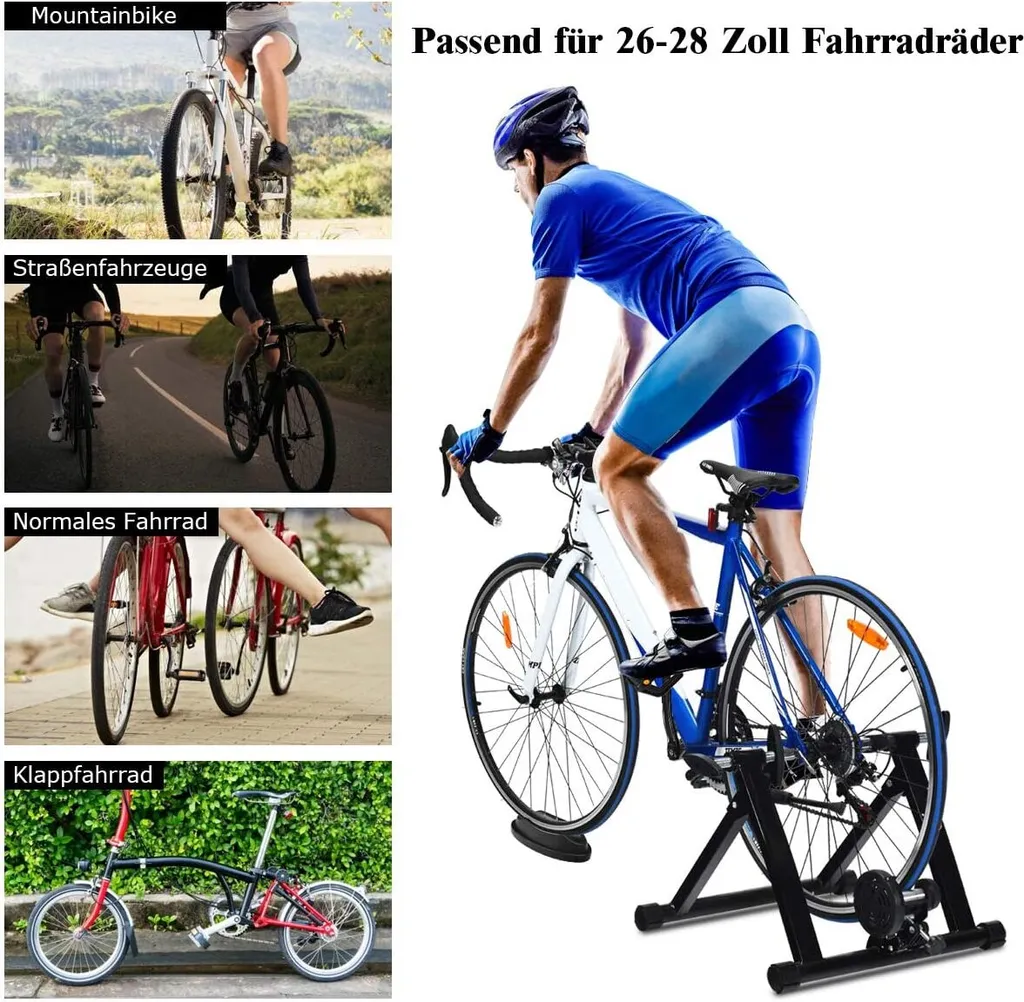 COSTWAY Rollentrainer Aus Stahl, Cycletrainer Klappbar, Fahrrad Heimtrainer Für Indoor Fahrradtraining, Fahrradtrainer Schnellspannhebel Und Double-Locking-System Schwarz