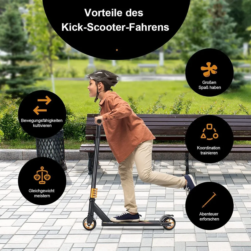 COSTWAY Stunt Scooter 100kg Belastbar Cityroller Mit PolyurethanRädern Alu Tretroller Kickscooter Für Kinder & Erwachsene Schwarz