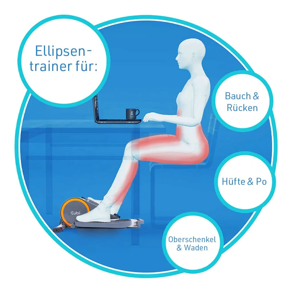 Cubii Go Seated Under Desk Elliptisch, Tragbar Mit Integrierten Rädern Und Einziehbarem Griff, Kompaktes Pedal-Fahrradtrainer Für Heim-Fitness, Beleuchtetes LCD-Display, Mobile App