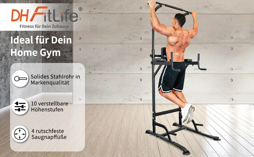 DH FitLife Power Tower Dip Station | Power Rack Mit Klimmzugstange, Dip Barren U. Rückentrainer | Kraftstation Kraftturm | Fitness Station |