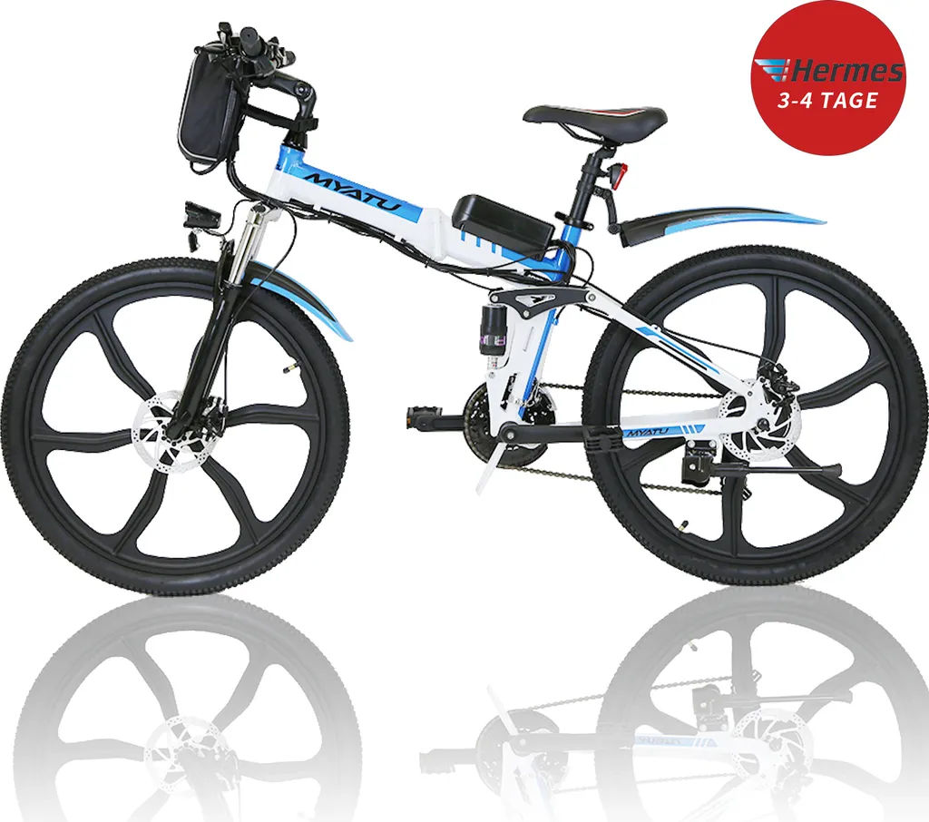 E-Bike 26 Zoll E-Mountainbike Aus Aluminium, Klapprad Mit 36V 10.4AH Batterie, 21 Gang Shimano, Kettenschaltung, 250,00 W
