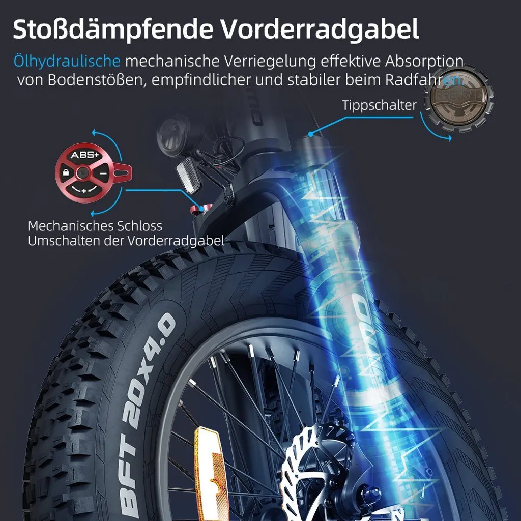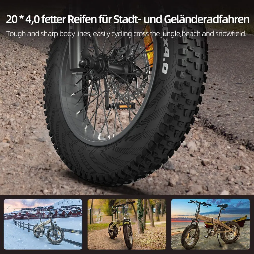 EU- HIMO ZB20 MAX 20“ 4.0 Fatbike E Bike, Mountainbike E Bike , 48V/10Ah Lithium-Ionen-Akkus, Doppelscheibenbremsen, Faltbares Strand-/Schnee-/All Terrain-Elektrofahrrad