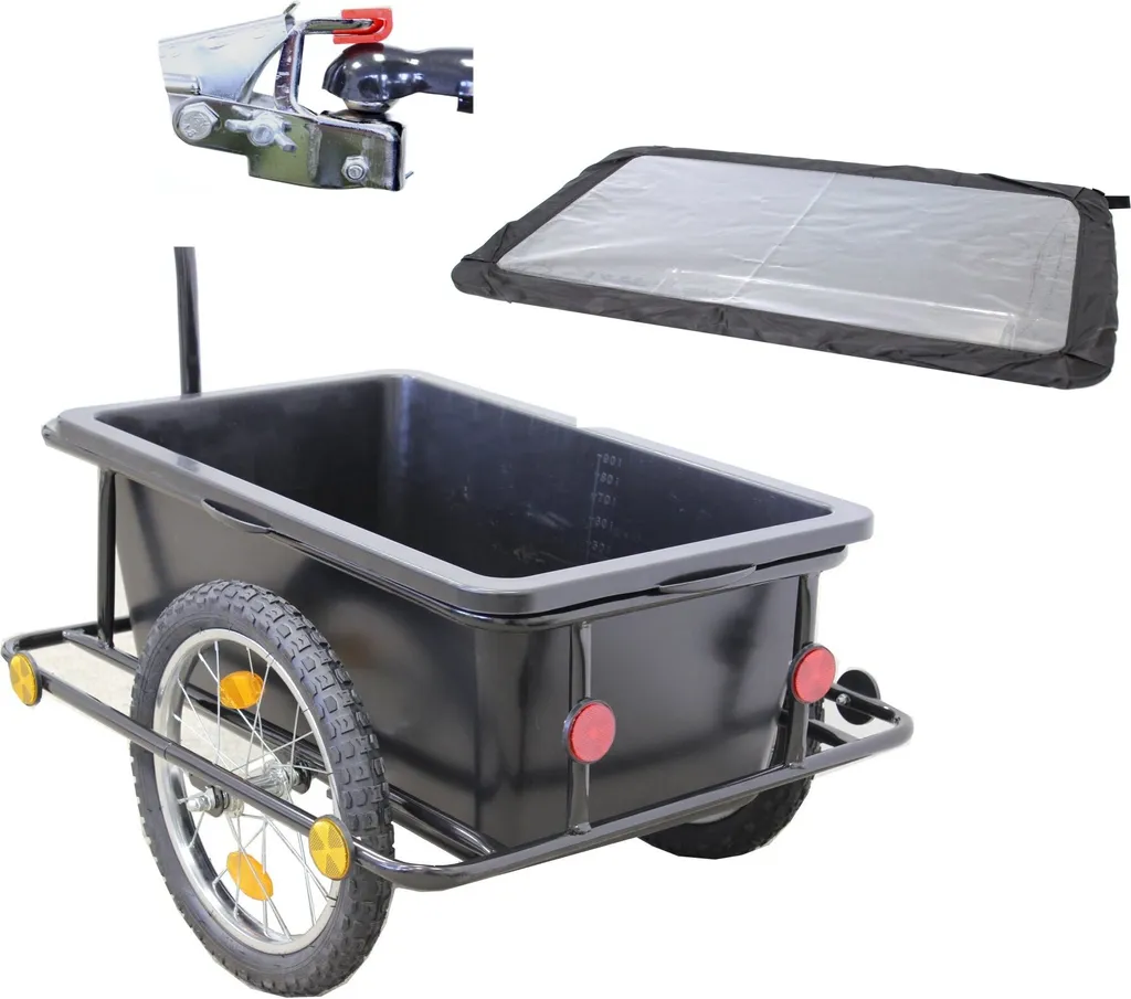 Fahrradanhänger Mit Kupplung 90L Plane Handwagen Transportanhänger Lastenanhänger