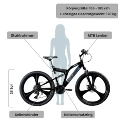 360Home Fat Bike 26 Zoll Mountainbike Fahrrad Vollgefedertes Fahrrad Mit Großem Reifen Fully Grau