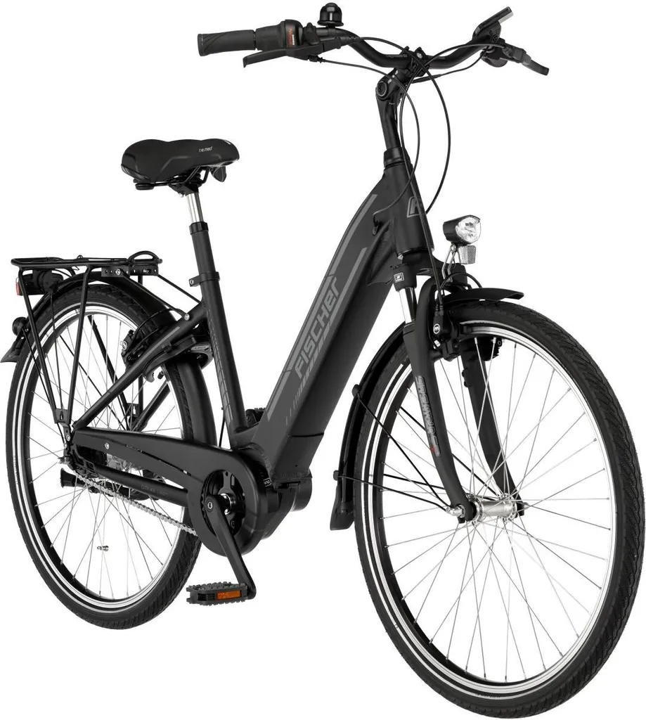 FISCHER E-Bike Pedelec City CITA 4.1i, Rahmenhöhe 41 Cm, 28 Zoll, Akku 504 Wh, Mittelmotor, Tiefer Einstieg, Nabenschlatung, LCD Display, Schwarz