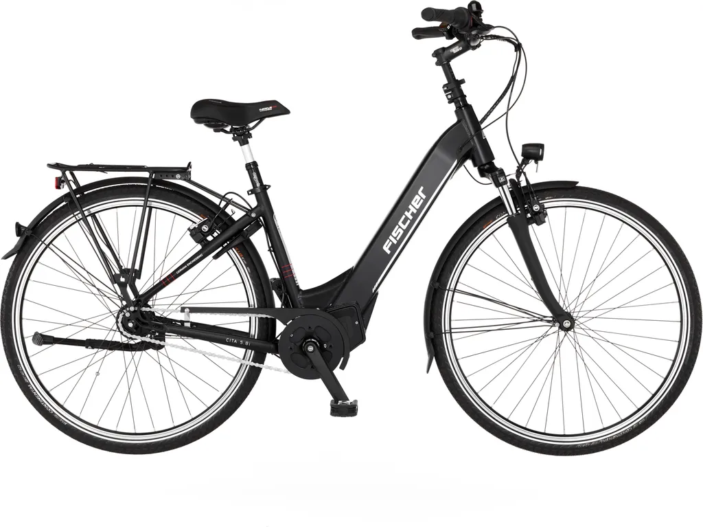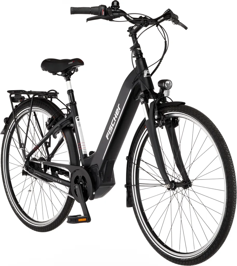 FISCHER E-Bike Pedelec City CITA 5.8i, Rahmenhöhe 44 Cm, 28 Zoll, Akku 504 Wh, Mittelmotor, Tiefer Einstieg, Nabenschaltung, Brose Display, Schwarz
