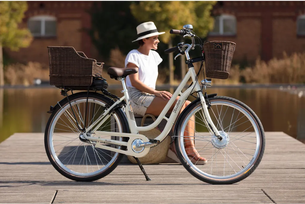 FISCHER E-Bike Pedelec City CITA ER1804, Rahmenhöhe 48 Cm, 28 Zoll, Akku 317 Wh, Vorderradmotor, Tiefer Einstieg, Retro Vintage, Rücktritt, Nabenschaltung, LED Display, Beige