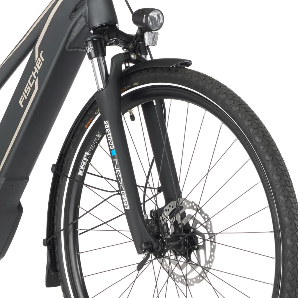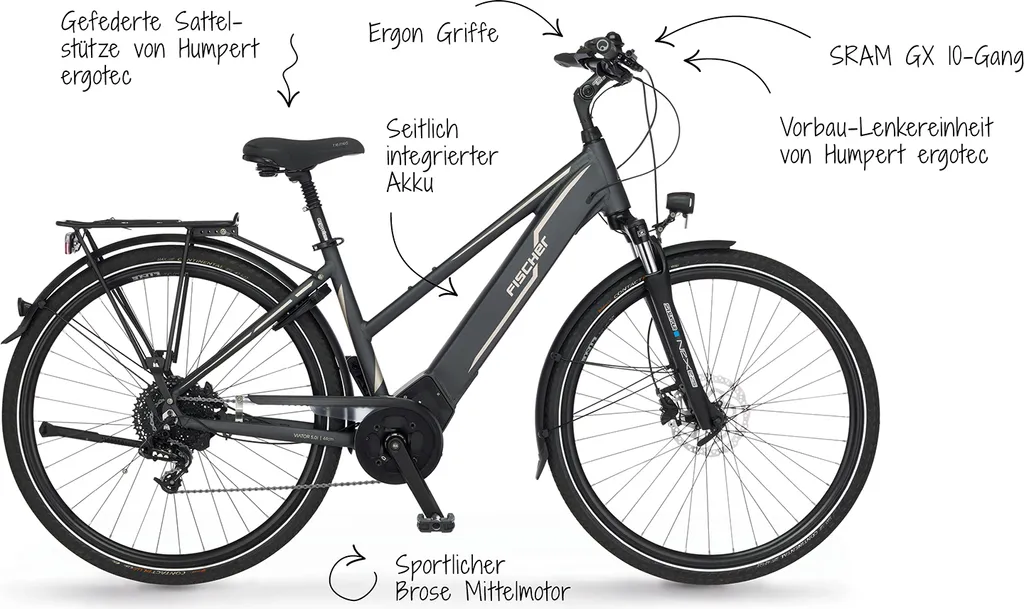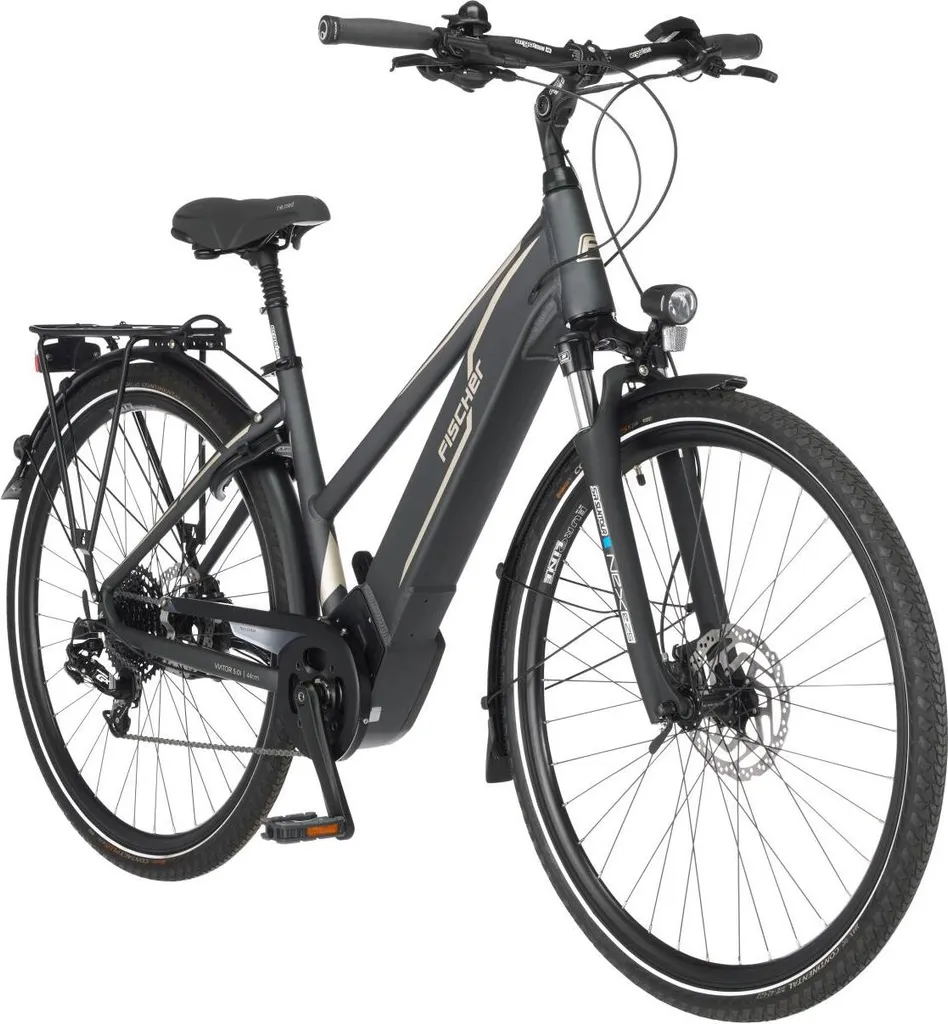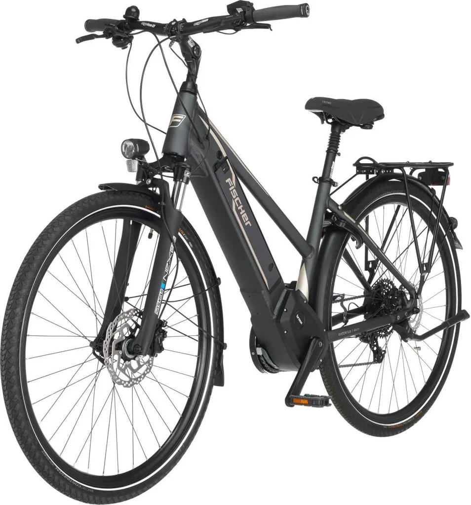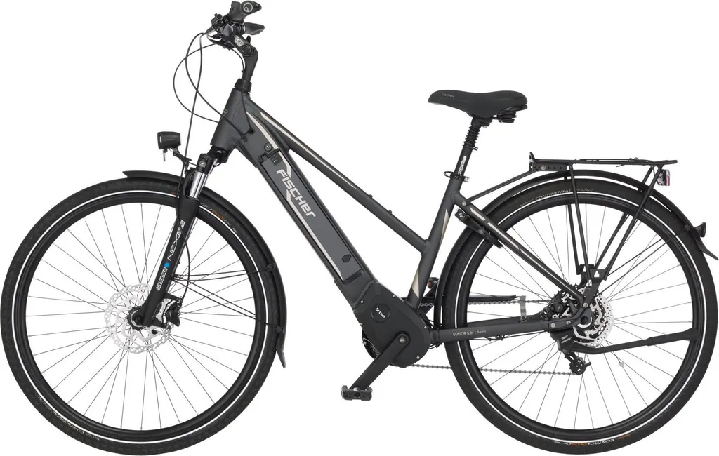 FISCHER E-Bike Pedelec Trekking VIATOR 5.0i Damen, Rahmenhöhe 44 Cm, 28 Zoll, Akku 504 Wh, Mittelmotor, Kettenschaltung, Brose Display, Grau