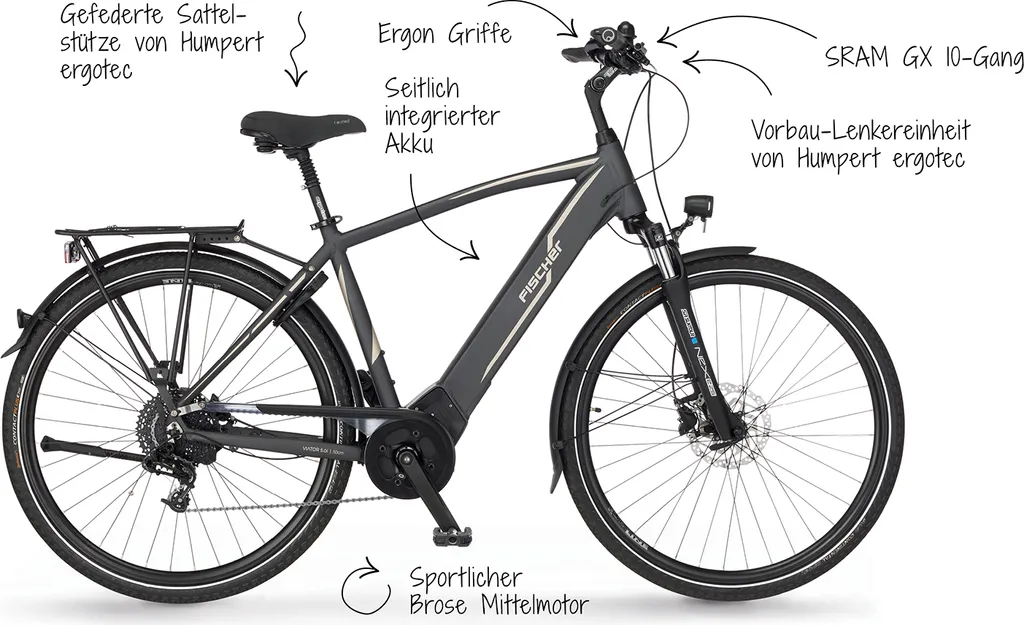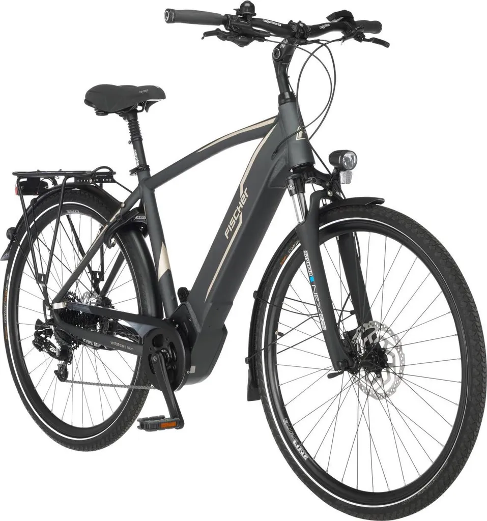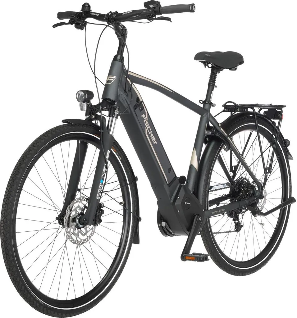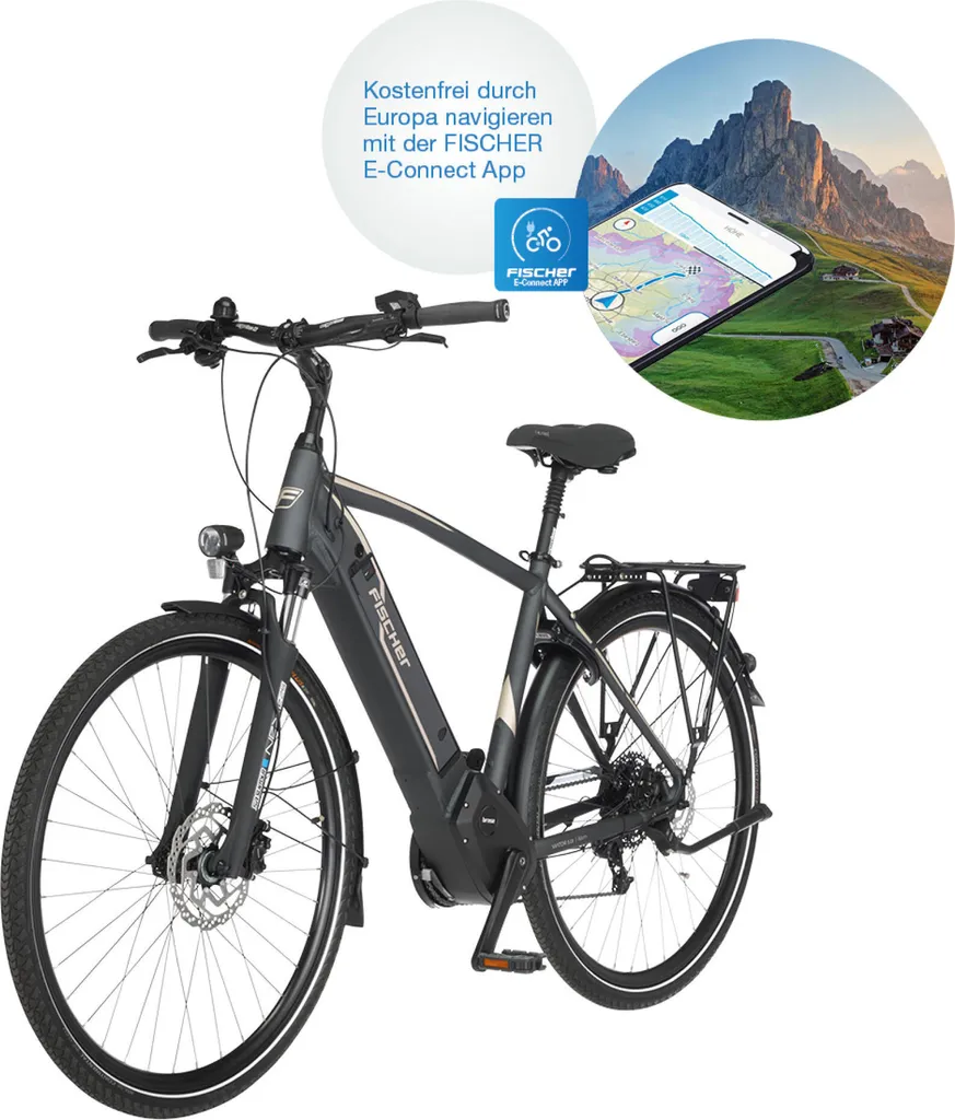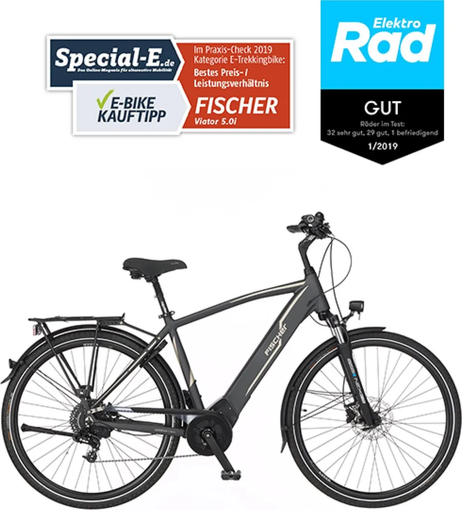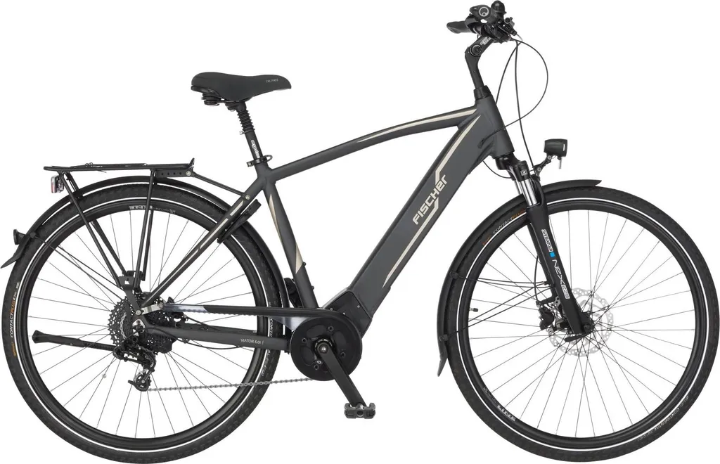 FISCHER E-Bike Pedelec Trekking VIATOR 5.0i Herren, Rahmenhöhe 55 Cm, 28 Zoll, Akku 504 Wh, Mittelmotor, Kettenschaltung, Brose Display, Grau