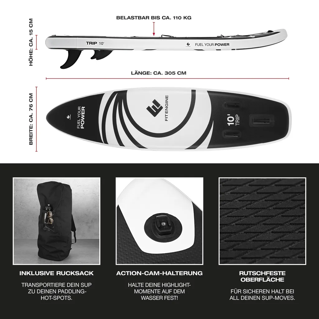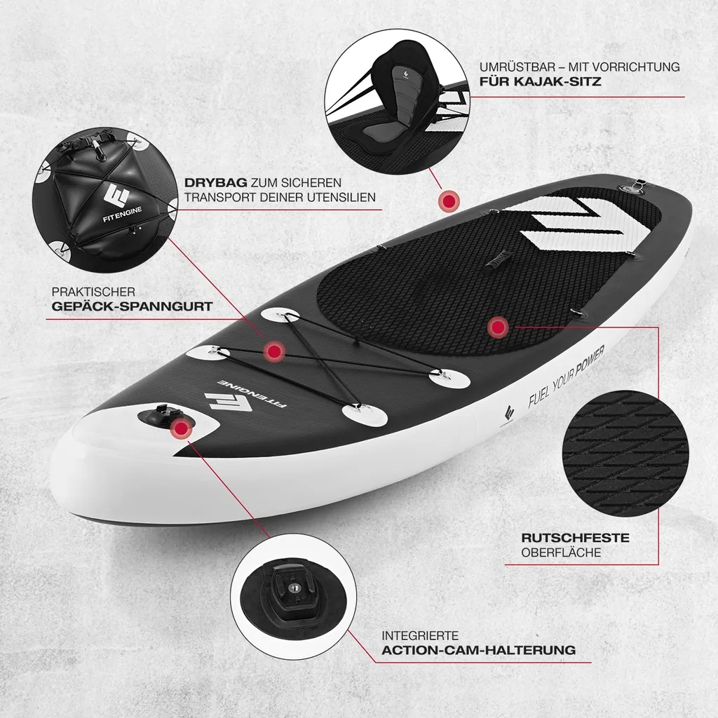 FitEngine Trip SUP-Board Set (Allrounder) – 10- Inkl. Kajak-Sitz
