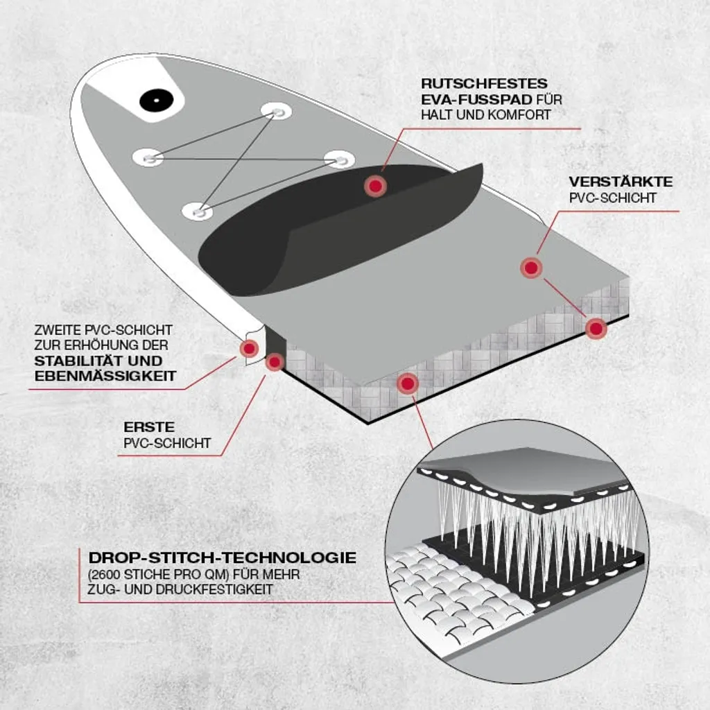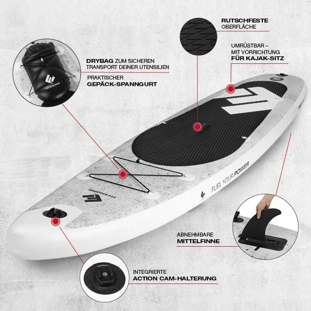 | Zusätzliche Varianten | FitEngine Race SUP-Board Set (Touring) 118, FitEngine Trip SUP-Board Set (Allrounder) – 108 Beton StandUp Paddle Board Stand up Brett |