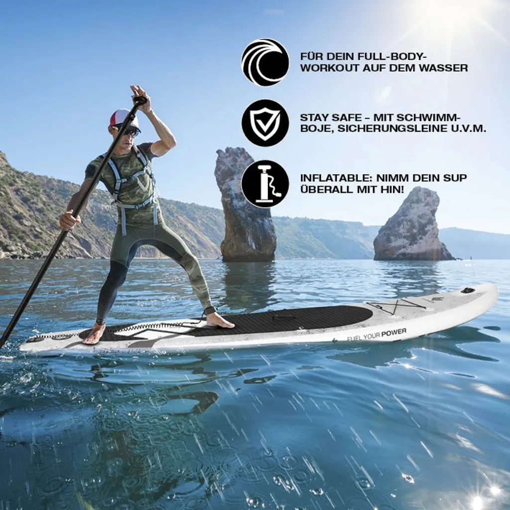 EASYmaxx Stand Up Paddle Board – Paddelboard Wellenreiter Aufblasbar – 320 X 76 X 15 Cm – Weiß/blau