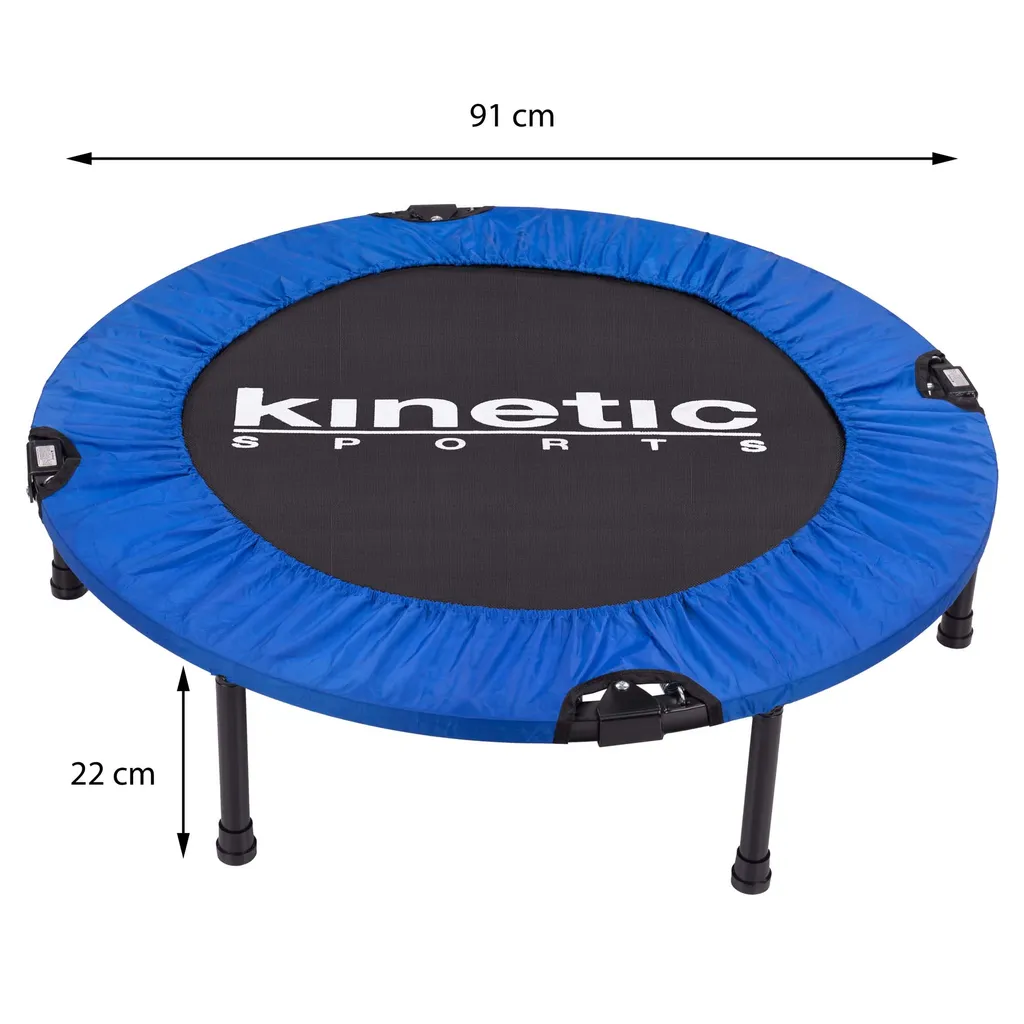Fitness Trampolin Ø 91cm, TEST BILD TOP MARKE, Indoor Minitrampolin, Sprungtraining, Smart Jumping Workout, Platzsparend Faltbar, Bis 100kg, KINETIC SPORTS