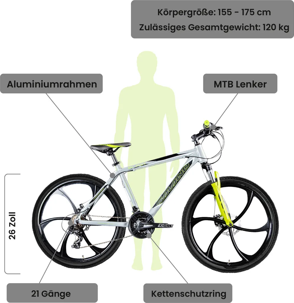 Galano Blast 26 Zoll Mountainbike 155 – 175 Cm MTB Hardtail Fahrrad 21 Gänge Scheibenbremsen Damen Herren Jugendliche Unisex
