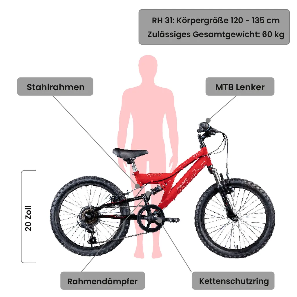 Galano FS180 Kinderfahrrad Ab 6 Jahre 120-135cm Mädchen Jungen Fahrrad 20 Zoll 6 Gang Mountainbike Fully Mit V-Brakes MTB