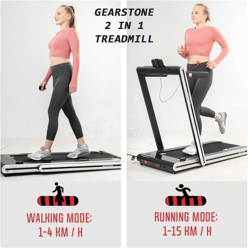 GEARSTONE 2 In 1 Klappbares Laufband, Laufband Mit Bluetooth-Lautsprecher, Fernbedienung, LED-Anzeige, Einfache Montage, Indoor-Walking-Laufmaschine Für Home Office Fitness