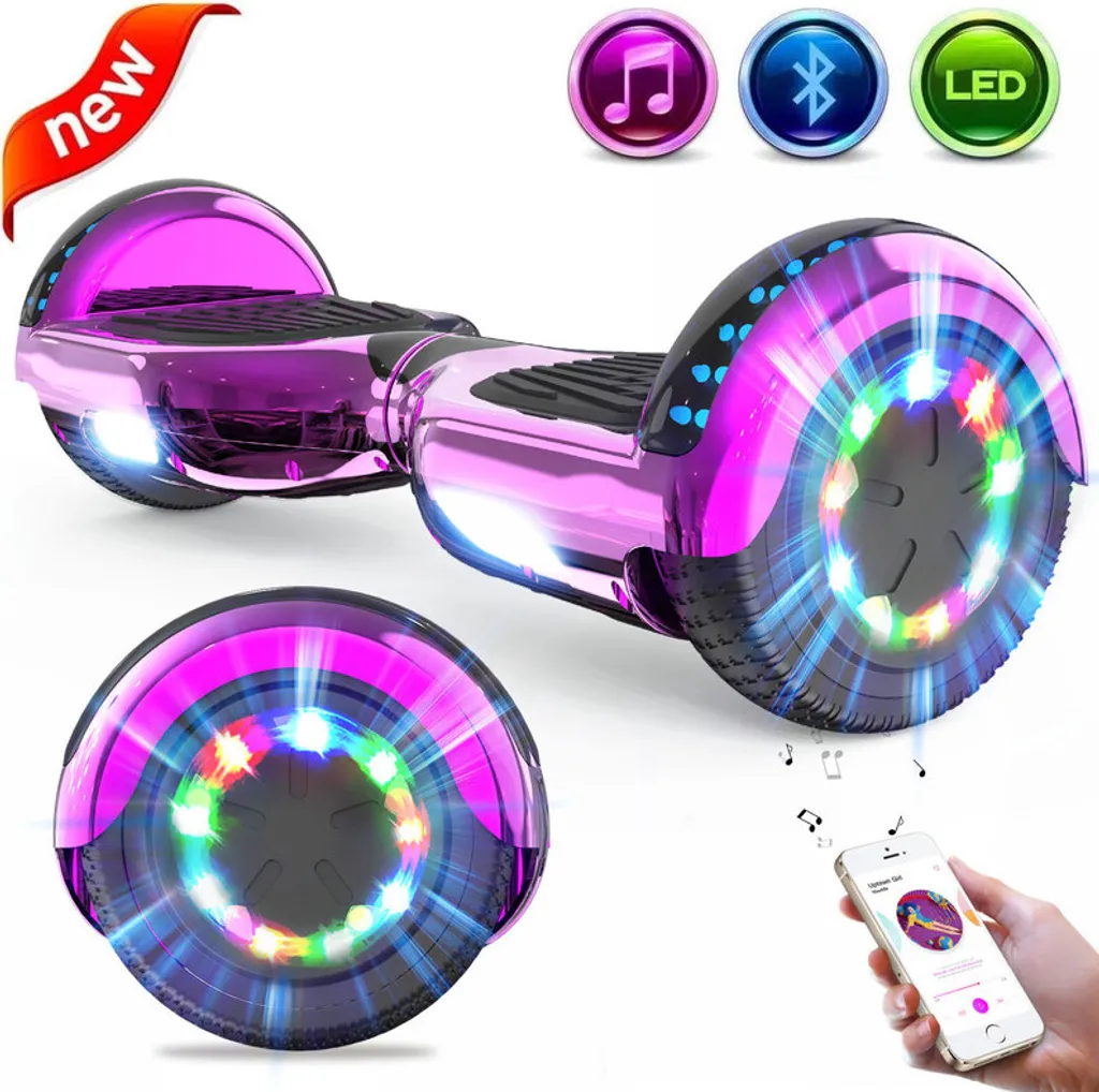 GeekMe Hoverboard Für Kinder 6,5 Zoll, Elektroroller, Elektro Scooter Board Mit Bluetooth Lautsprecher, LED Leuchten, Geschenk Für Kinder, Jugendliche Und Erwachsene