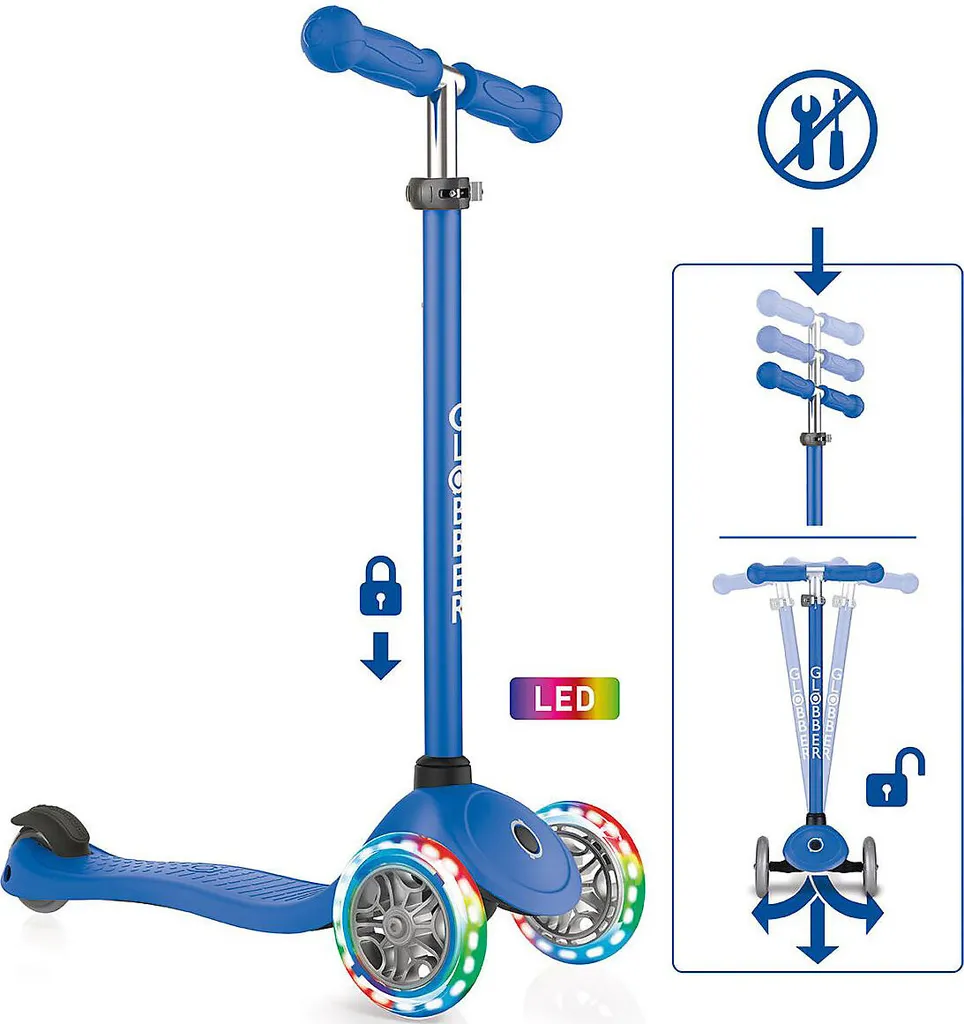 Globber Sport Scooter PRIMO LIGTHS, Navy-Blau Mit Leuchtrolle Roller Scooter Spielzeugknaller Kifahr Rollenoutdoor 0 Bffahrzeuge Räumungsverkauf Versandfrei