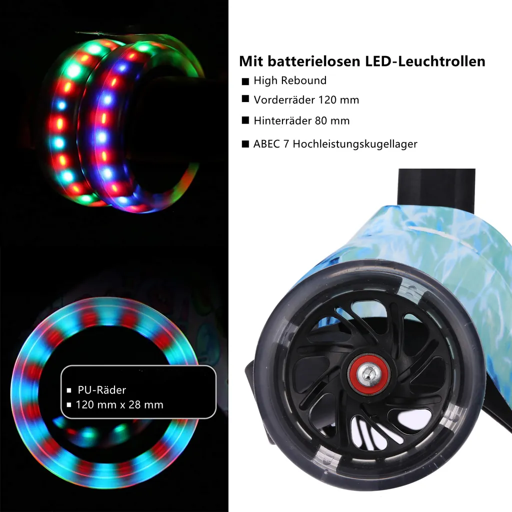Hikole Kinderroller Faltbar, Scooter Kinder Mit Einstellbarer Lenkerhöhe, 3 LED-Räder Und ABEC 7 Lagern Für Kinder Jungen Mädchen, Bis 50kg