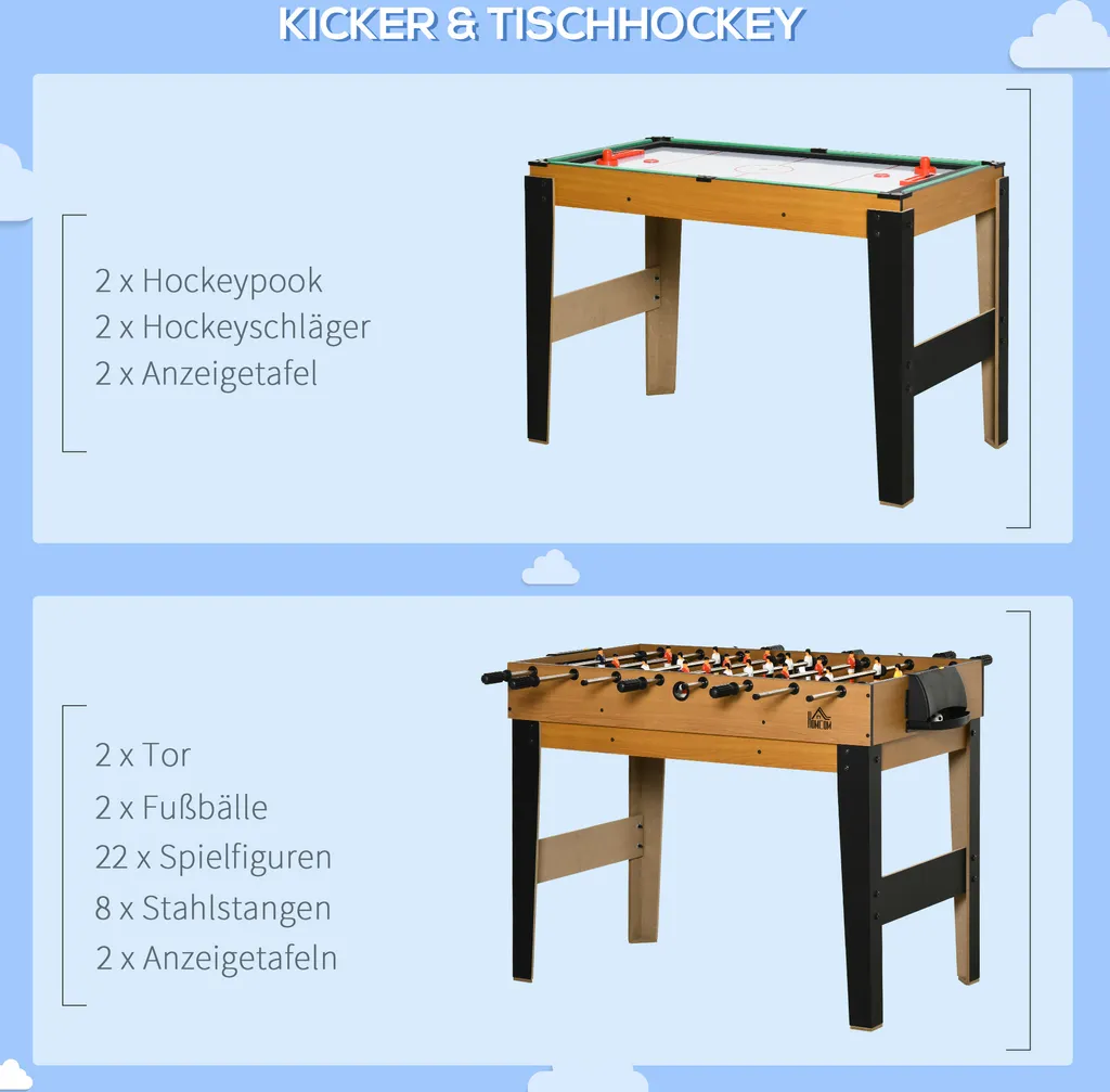 HOMCOM 107cm 4 In 1 Multigame Spieltisch Partyspiel Inkl. Tischtennis Kickertisch Billardtisch Eishockeytisch Ab 14 Jahren Stahl Natur+Schwarz