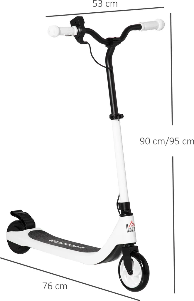 HOMCOM E-Scooter Mit Batteriestandsanzeige, Elektroroller Mit Höhenverstellbarem Lenker, Bremen, Elektro Scooter Max. 8km/h, 6 Km Reichweite, Ab 6 Jahren, Schwarz+Weiß