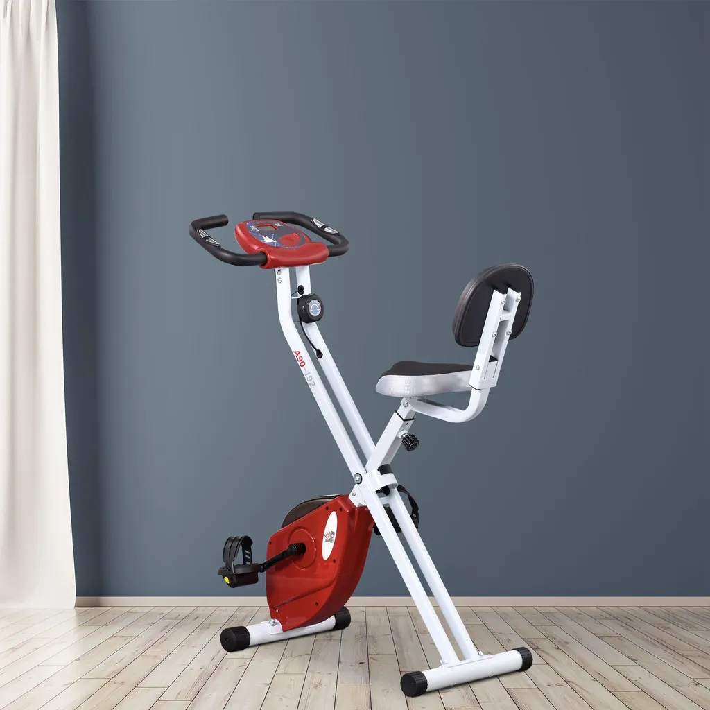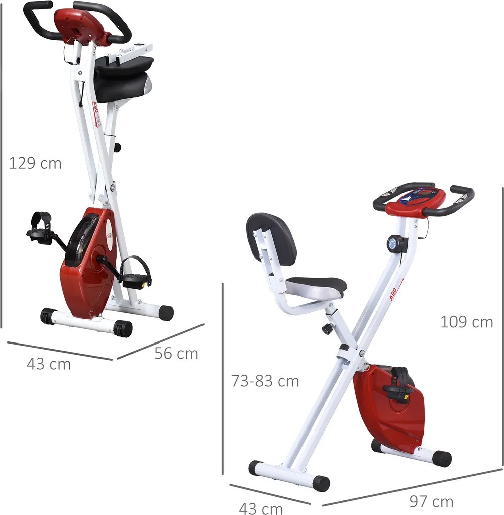 HOMCOM Heimtrainer Fahrradtrainer Mit 8 Stufig Einstellbarem Magnetwiderstand Höhenverstellbar Stahl Rot+Weiß 43 X 97 X 109 Cm