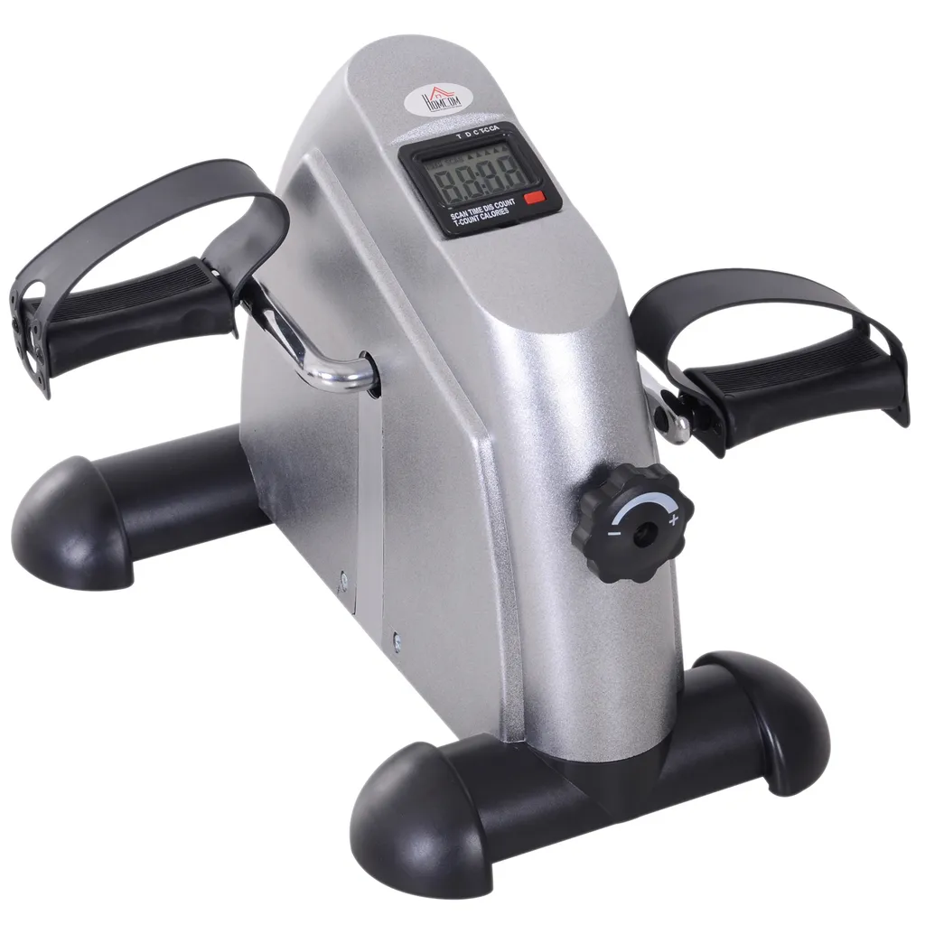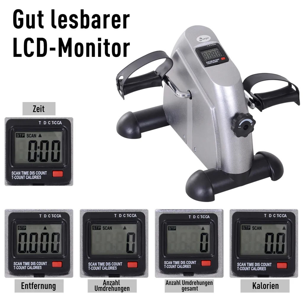 HOMCOM Heimtrainer Mini Bike Pedaltrainer Trainingsrad Fahrradgerät Mit LCD-Display Metall Silber 35 X 40 X 31 Cm
