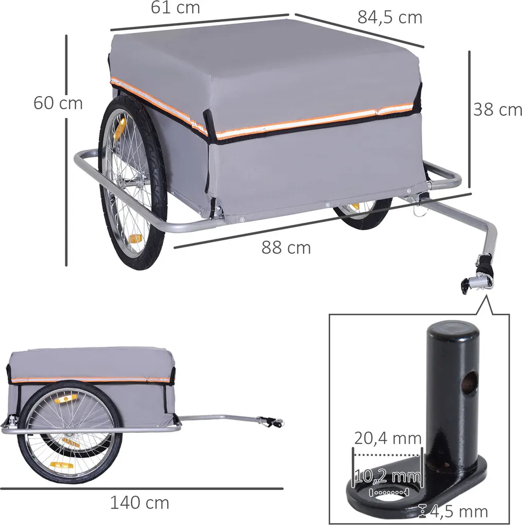 HOMCOM Lasten-Fahrradanhänger Transportanhänger CargoTrailer Fahrrad Faltbar Grau