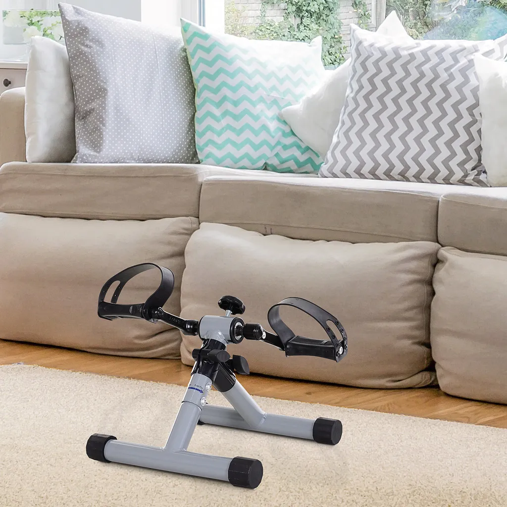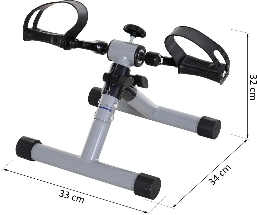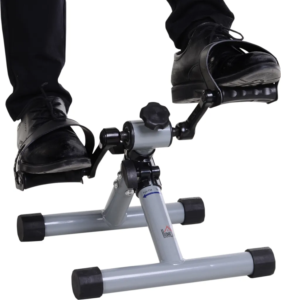 HOMCOM Mini Heimtrainer, Faltbarer Fahrradpedaltrainer, Mini-Bike, Stufenloser Widerstand, Stahl, Silbergrau, 33 X 34 X 32 Cm