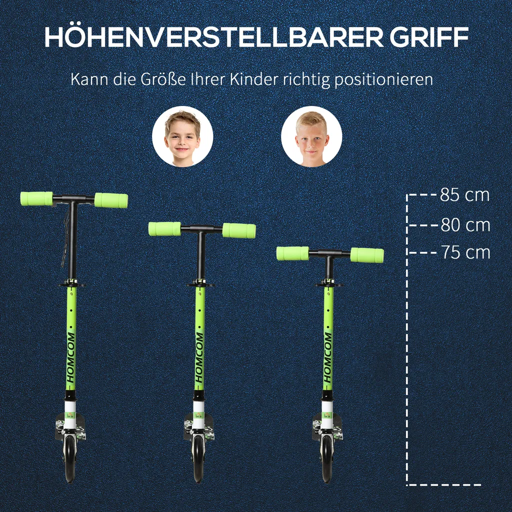 HOMCOM Scooter Kinderscooter Klappbar Kickscooter Mit Hinterbremsen Ø145 Mm Rädern Tretroller Höheverstellbar Bis 50 Kg Belastbar Für 4-8 Jahre Aluminium Eva Grün 72,8 X 33,4 X 75-85 Cm