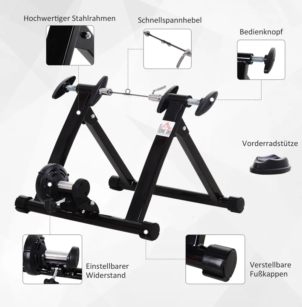 HOMCOM Stahl Schwarz Rollentrainer Fahrradtrainer Heimtrainer Magnetbremse Stahl Schwarz