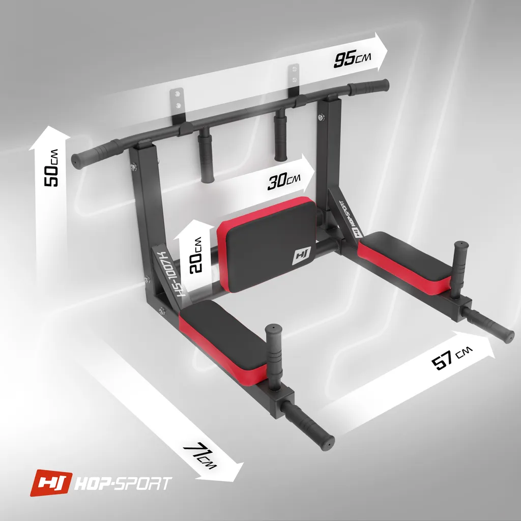 Hop-Sport 2in1 Kraftstation HS-1007K – Dip-Station Mit Klimmzugstange Zur Wandmontage – Pull Up Bar Mit Rutschfesten Griffen