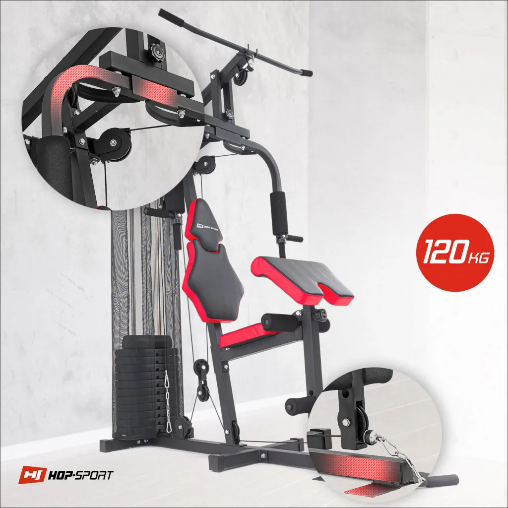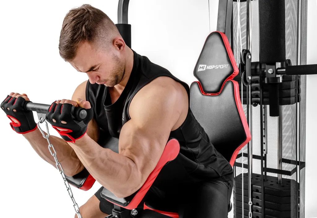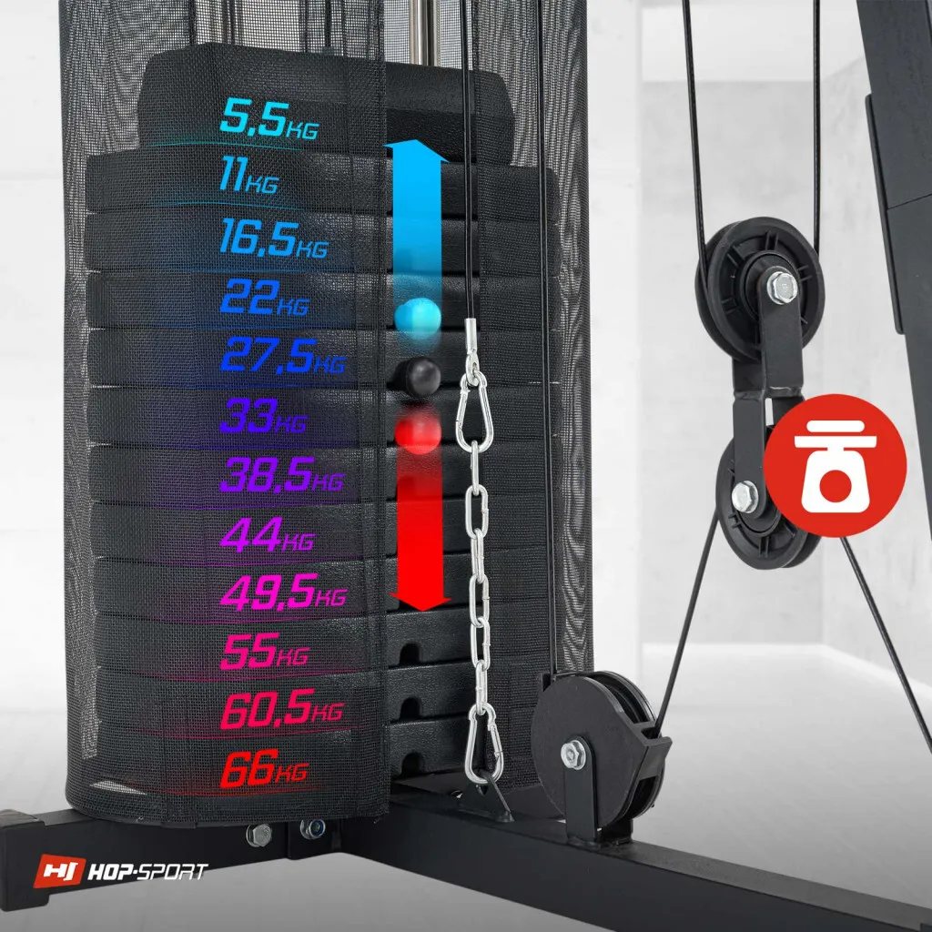 Hop-Sport HS-1044K Kraftstation Für Zuhause – Fitnessstation + 66 Kg Gewichte, Multigym Fitnesscenter Mit Seilzug, Butterfly Und Latzug