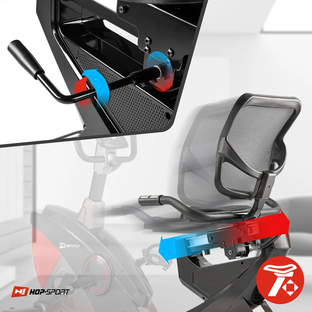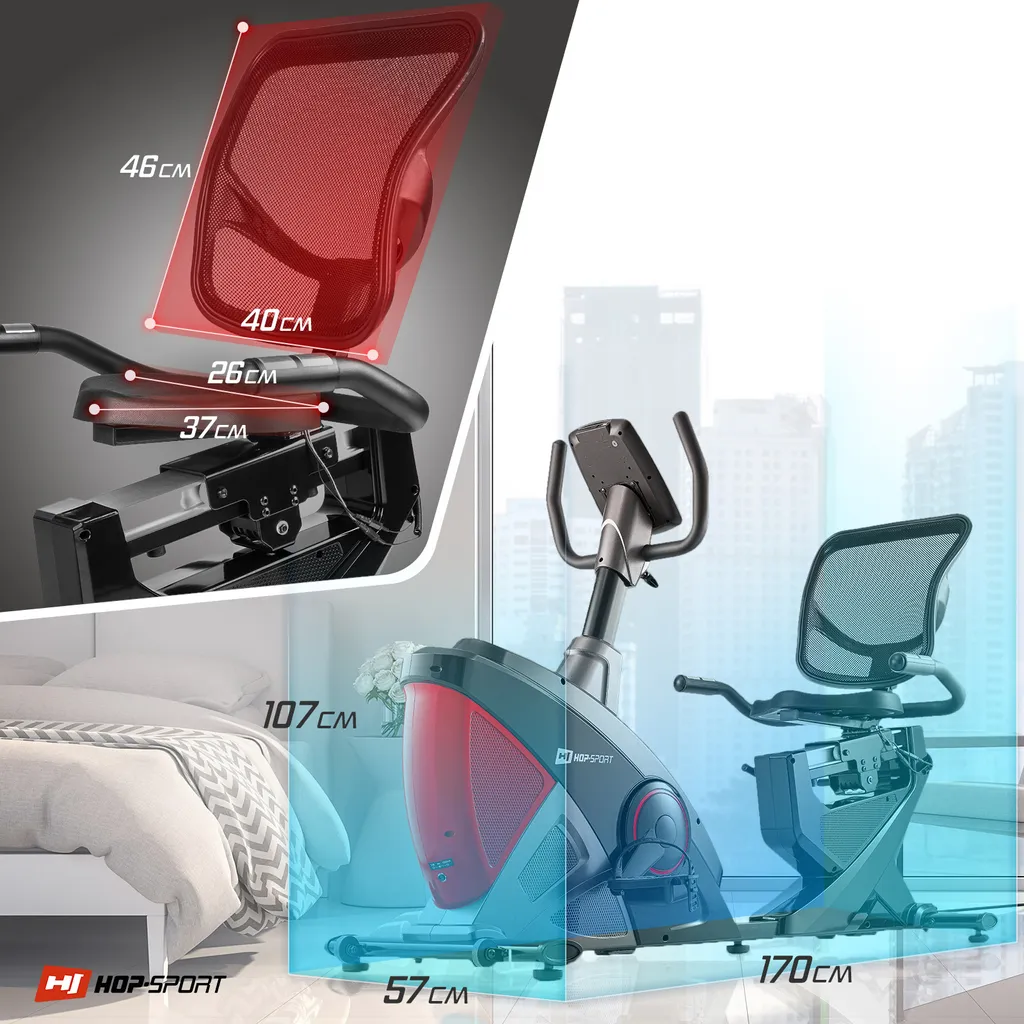 Hop-Sport Liegeergometer HS-070L Mit Unterlegmatte – Liegeheimtrainer Mit App-Steuerung, 12 Trainingsprogramme, 32 Widerstandsstufen – Sitzergometer Max. Nutzergewicht 150 Kg Rot