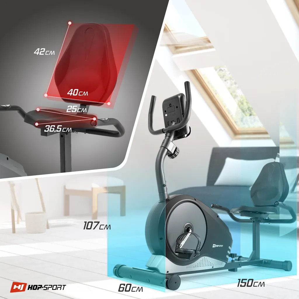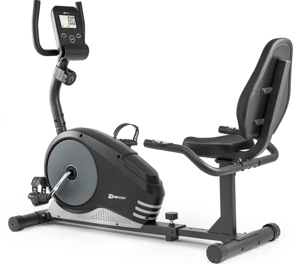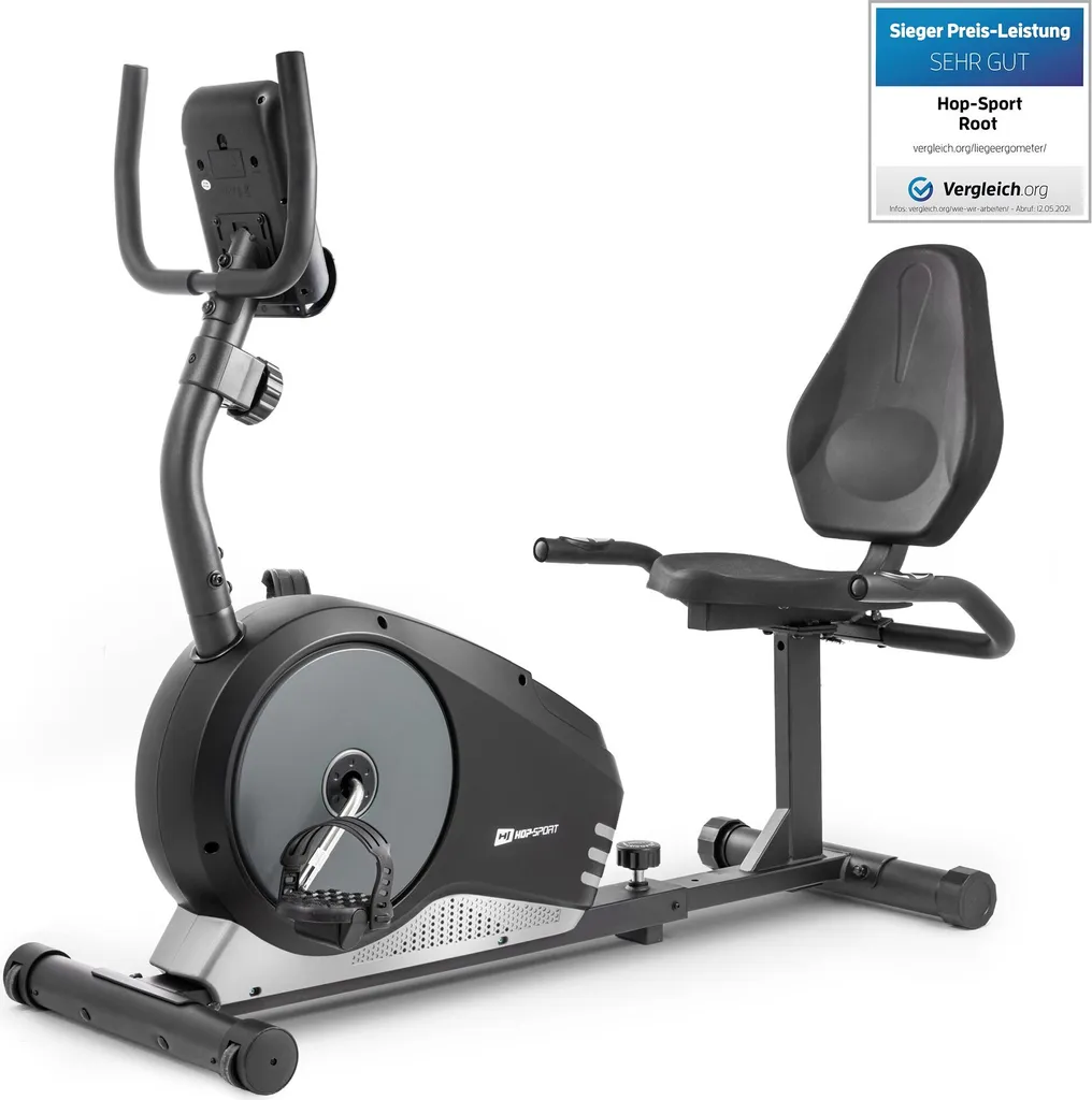 Hop-Sport Root Liege-Ergometer – Liegeheimtrainer Mit Handpulssensoren, 9,5 Kg Schwungmasse, 8 Widerstandsstufen – Sitzergometer Max. Benutzergewicht 120 Kg Silber