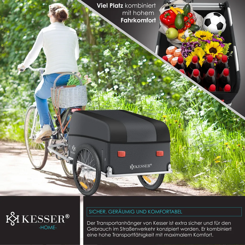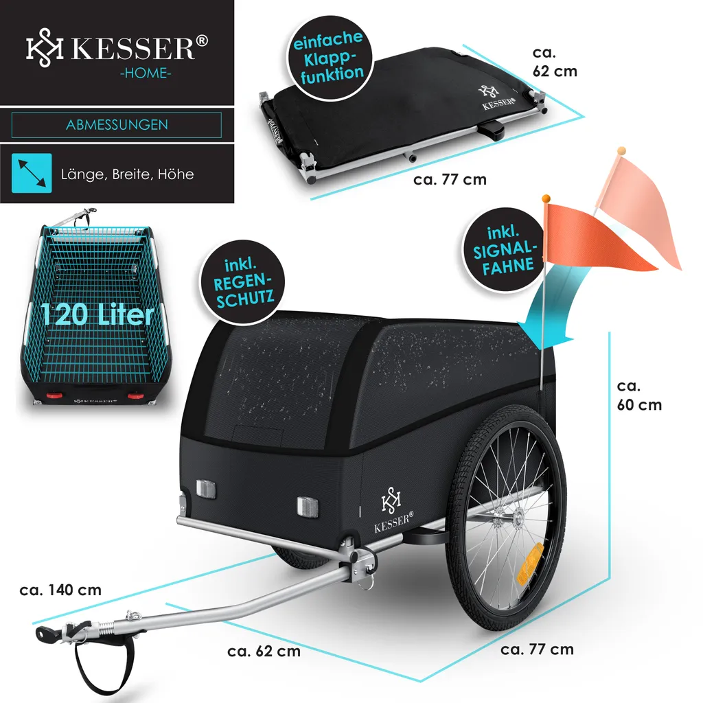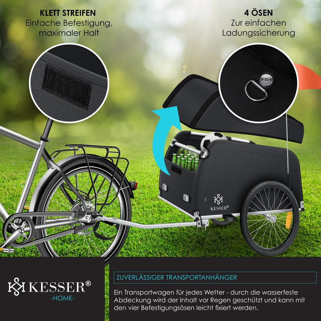 KESSER® Fahrradanhänger Lastenanhänger Transportanhänger Hochdeichsel Mit Kupplung, Inkl. Abdeckung Klappfunktion Hochdeichsel Anhänge Für Fahrrad Transportbox Mit 120 Liter Max. 40 Kg, Farbe:Schwarz / Anthrazit